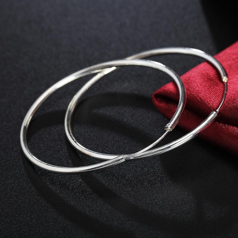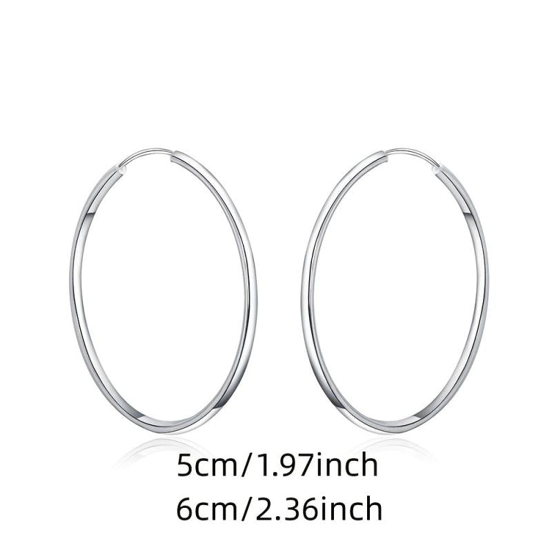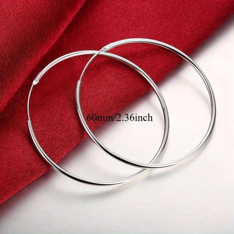 Add a touch of glamour to your outfit with these striking silvery round hoop earrings. The exaggerated size of 50 60mm makes a bold fashion statement. Perfect as a gift or to elevate your own style.