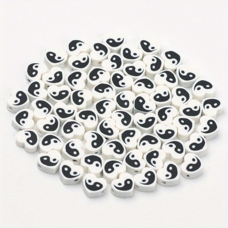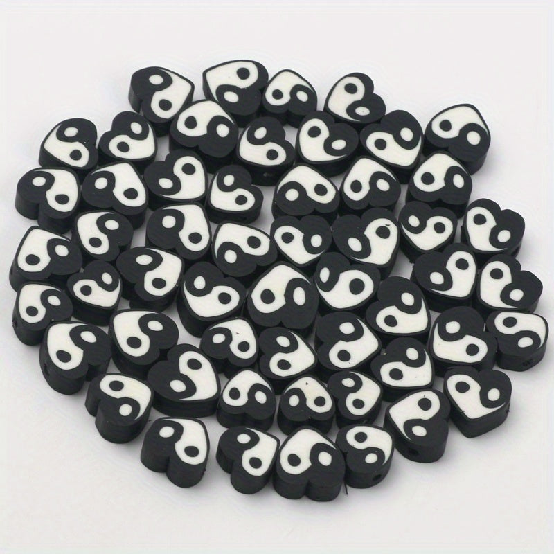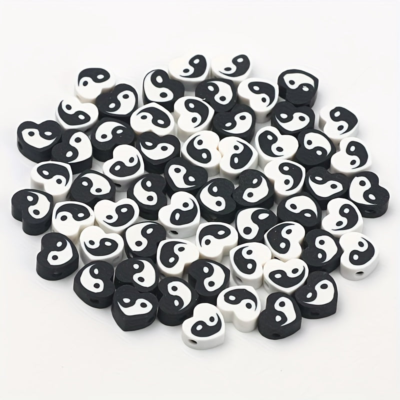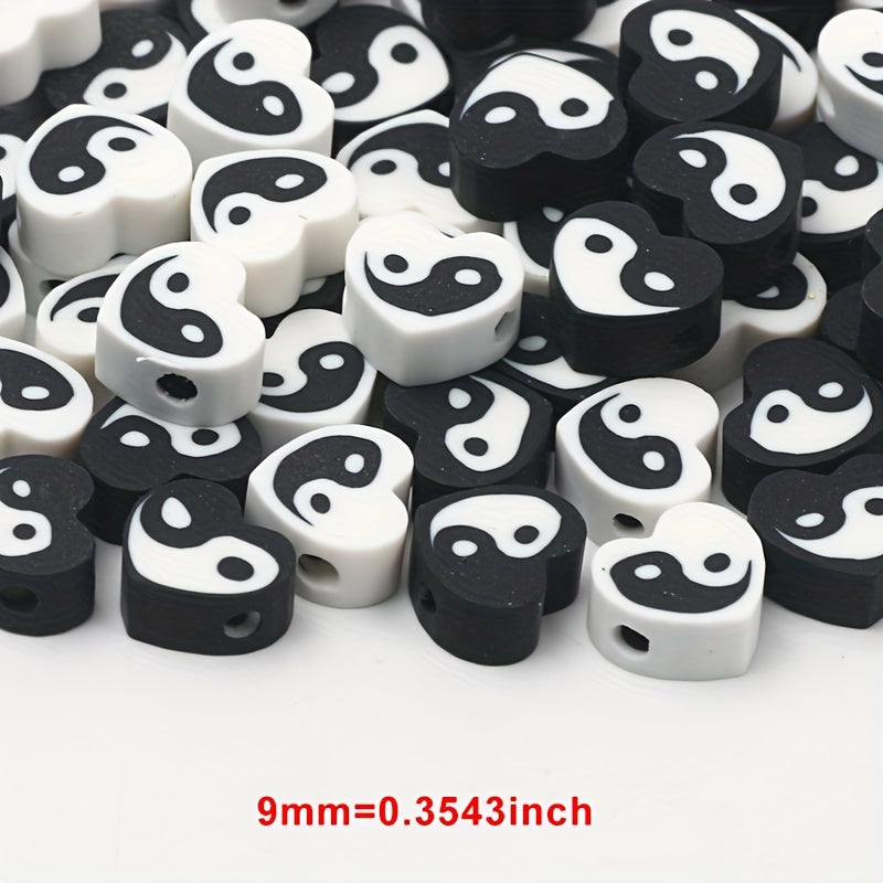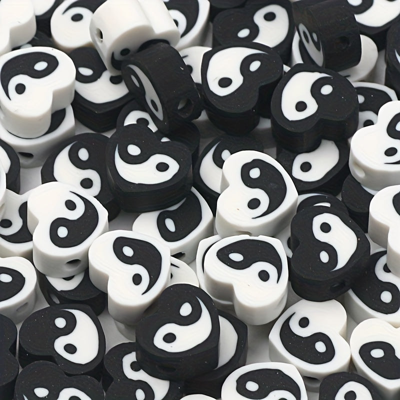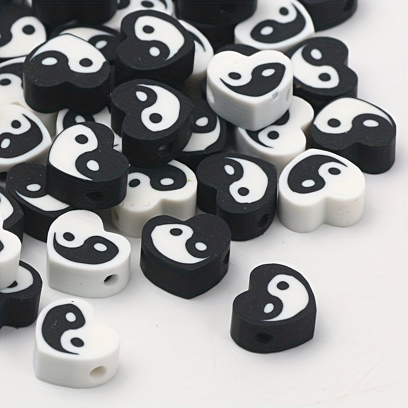 Create beautiful jewelry with these heart-shaped Tai Chi pattern soft clay beads. Perfect for bracelets, necklaces, and other accessories.