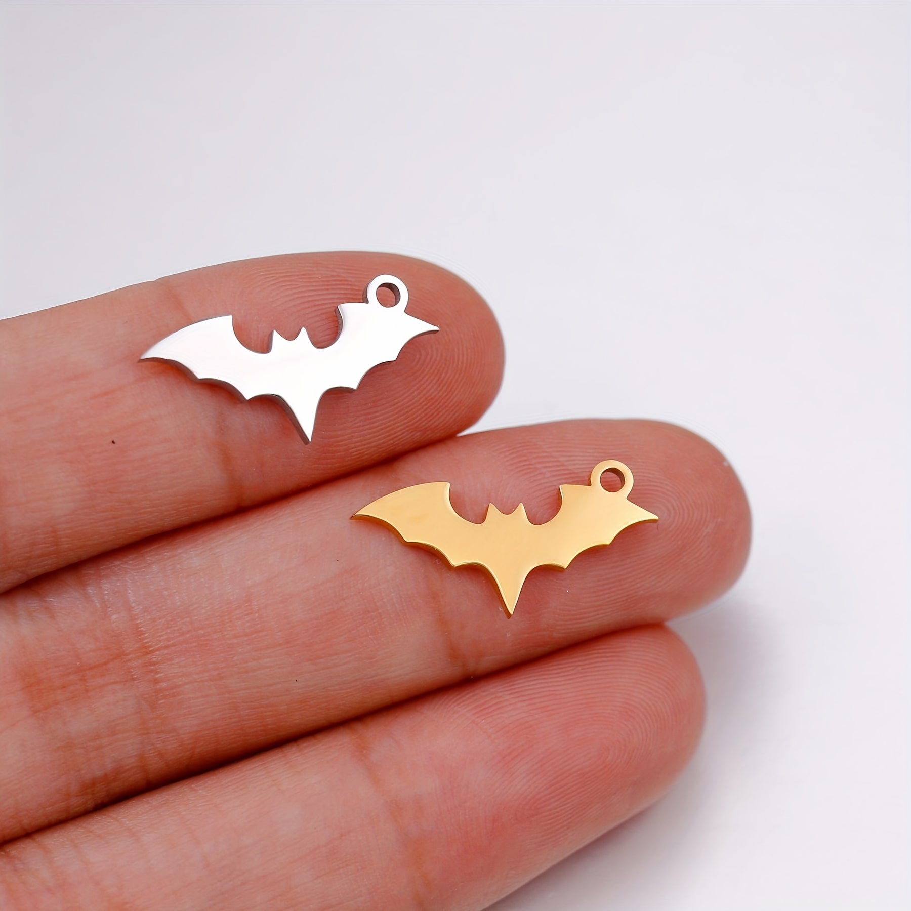 These 5pcs bat charms are perfect for creating unique jewelry pieces. Made of stainless steel, they are durable and ideal for bracelets. Add a touch of charm to your jewelry creations with these bat charms.