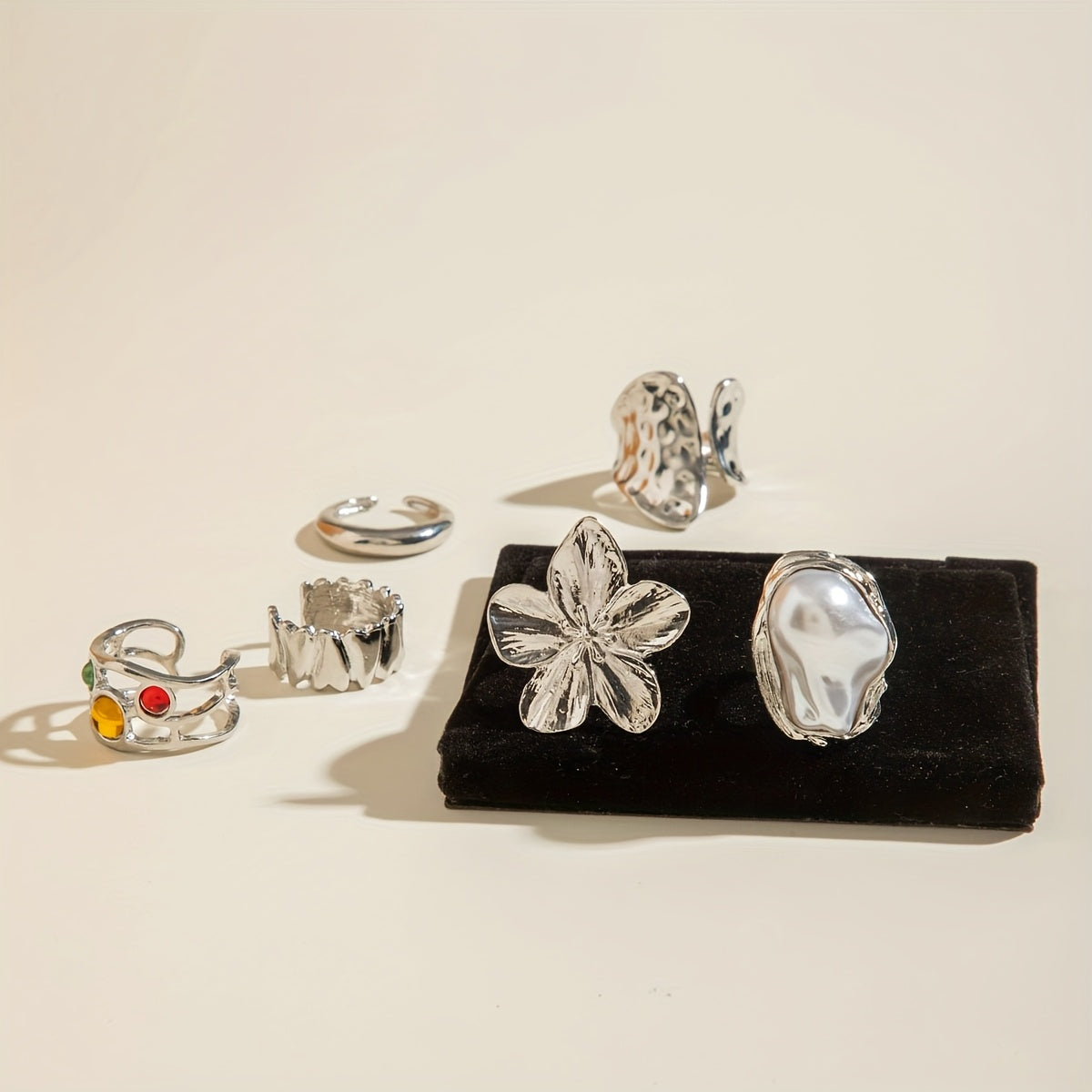 This set includes 6 rings featuring rhinestone and metal in floral & star shapes. Perfect for parties and formal events, these rings make an ideal gift for friends.