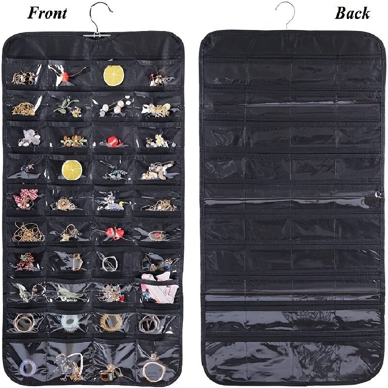 • 80 pockets to hold earrings, necklaces, bracelets, rings, etc.
