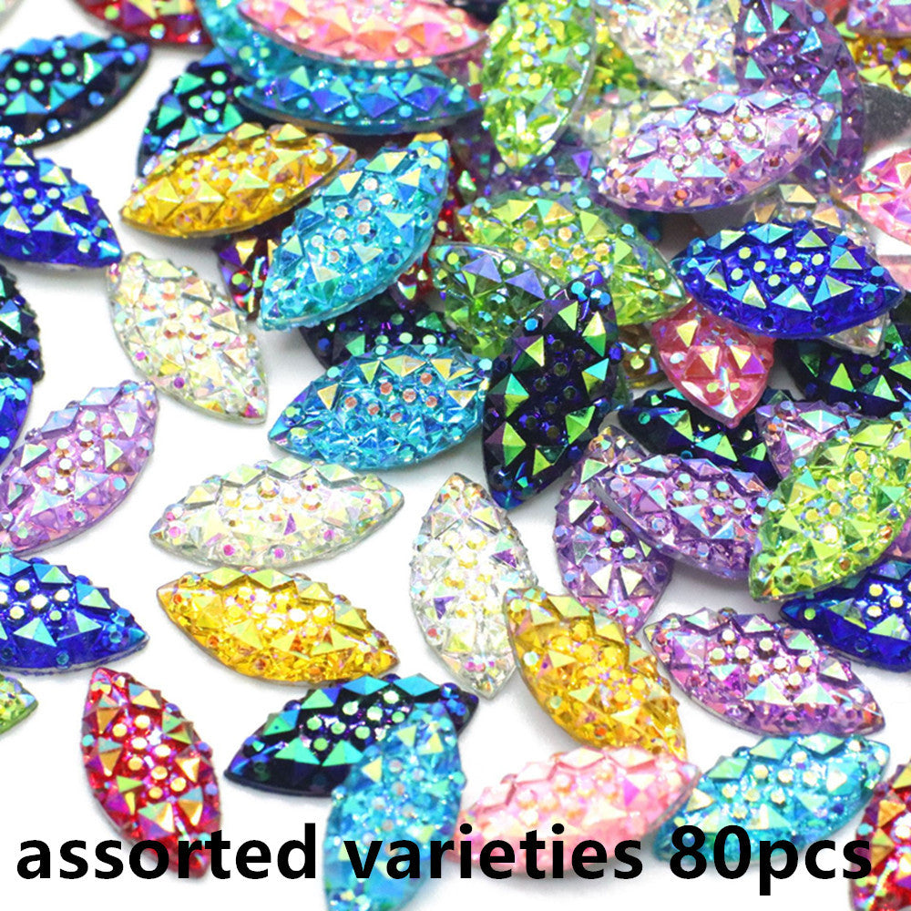 Enhance your jewelry making with this set of 80 multicolor resin shapes in sparkling floral and geometric designs. Perfect for DIY projects and adding a unique touch to your creations.