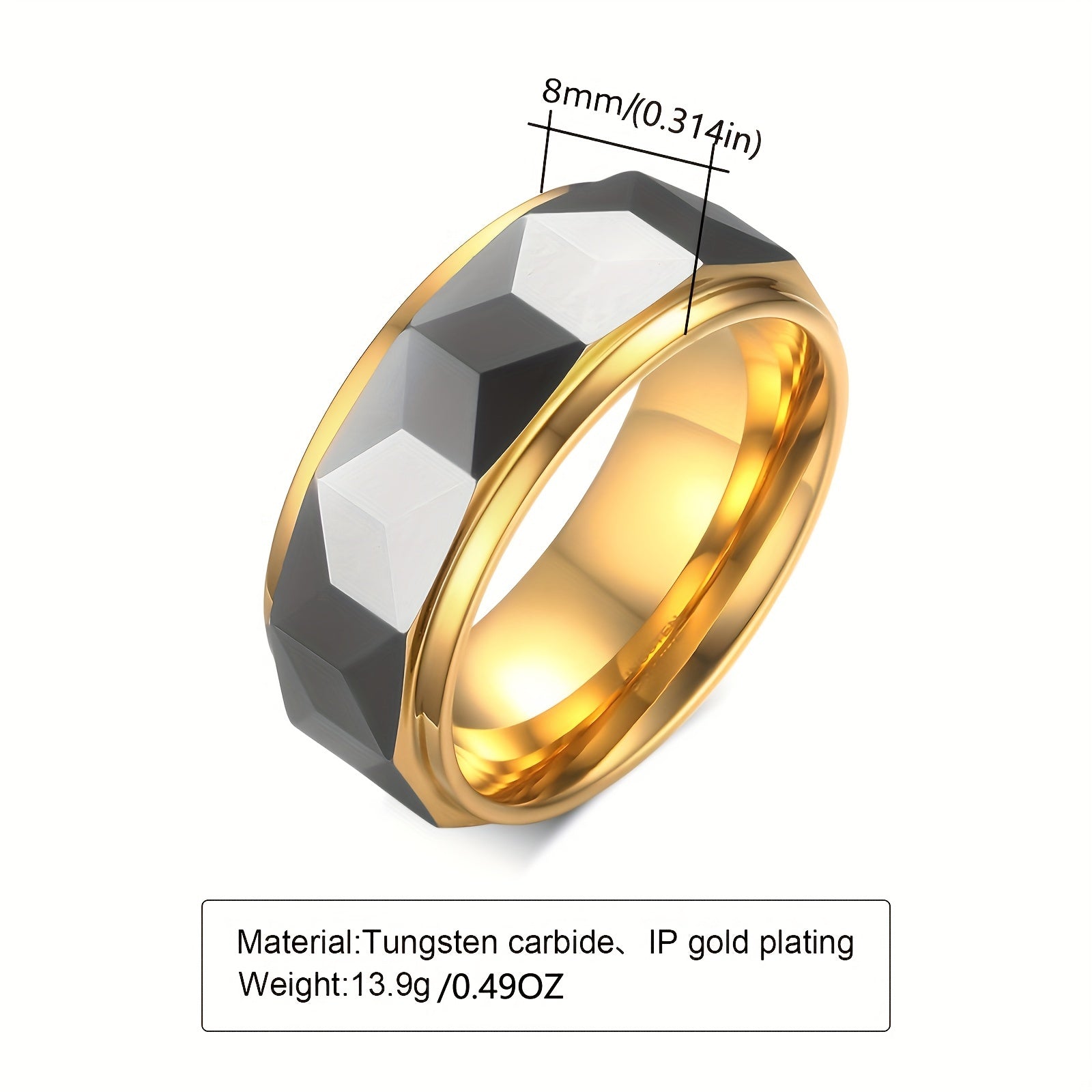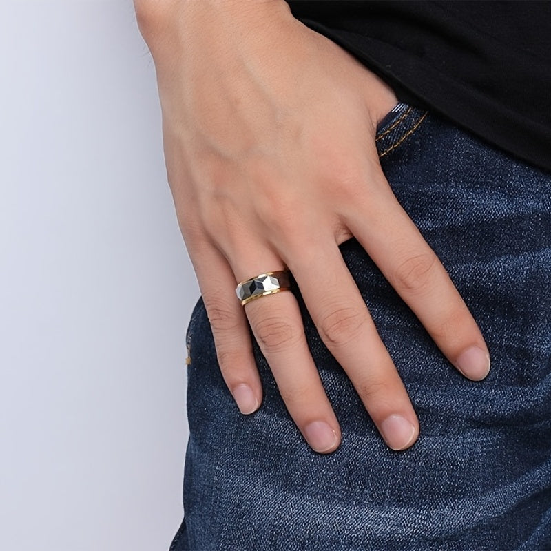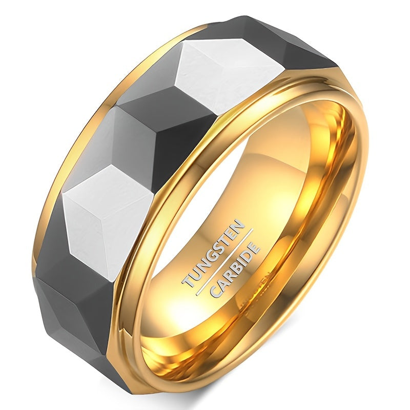 This 8mm golden tungsten steel ring is a perfect accessory for men. Ideal for engagement, wedding, banquet, party, holiday, birthday, and anniversary.