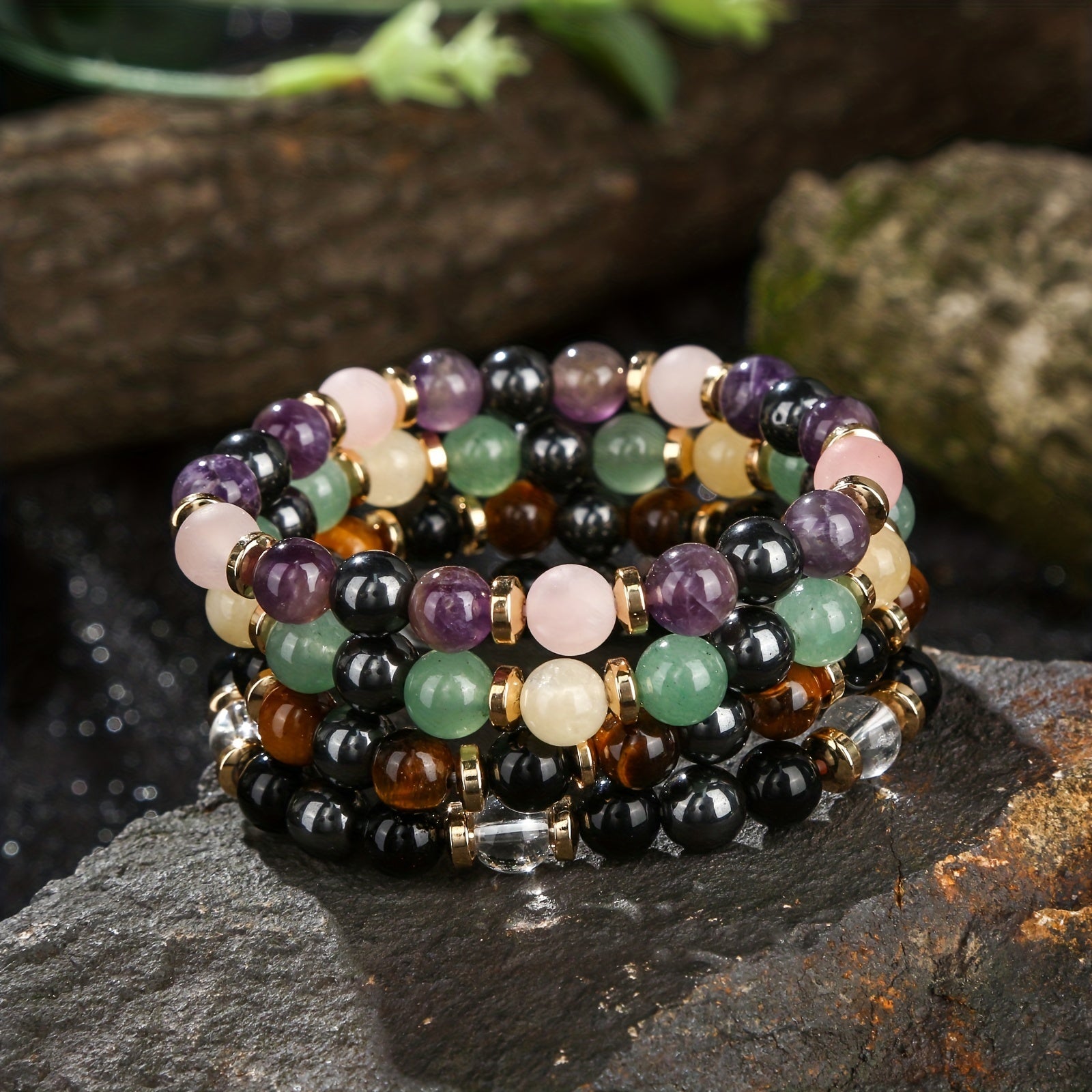 Elevate your style with this bohemian bracelet featuring a mix of natural stones. Hand-braided for a unique look, perfect for holiday gatherings and special occasions.