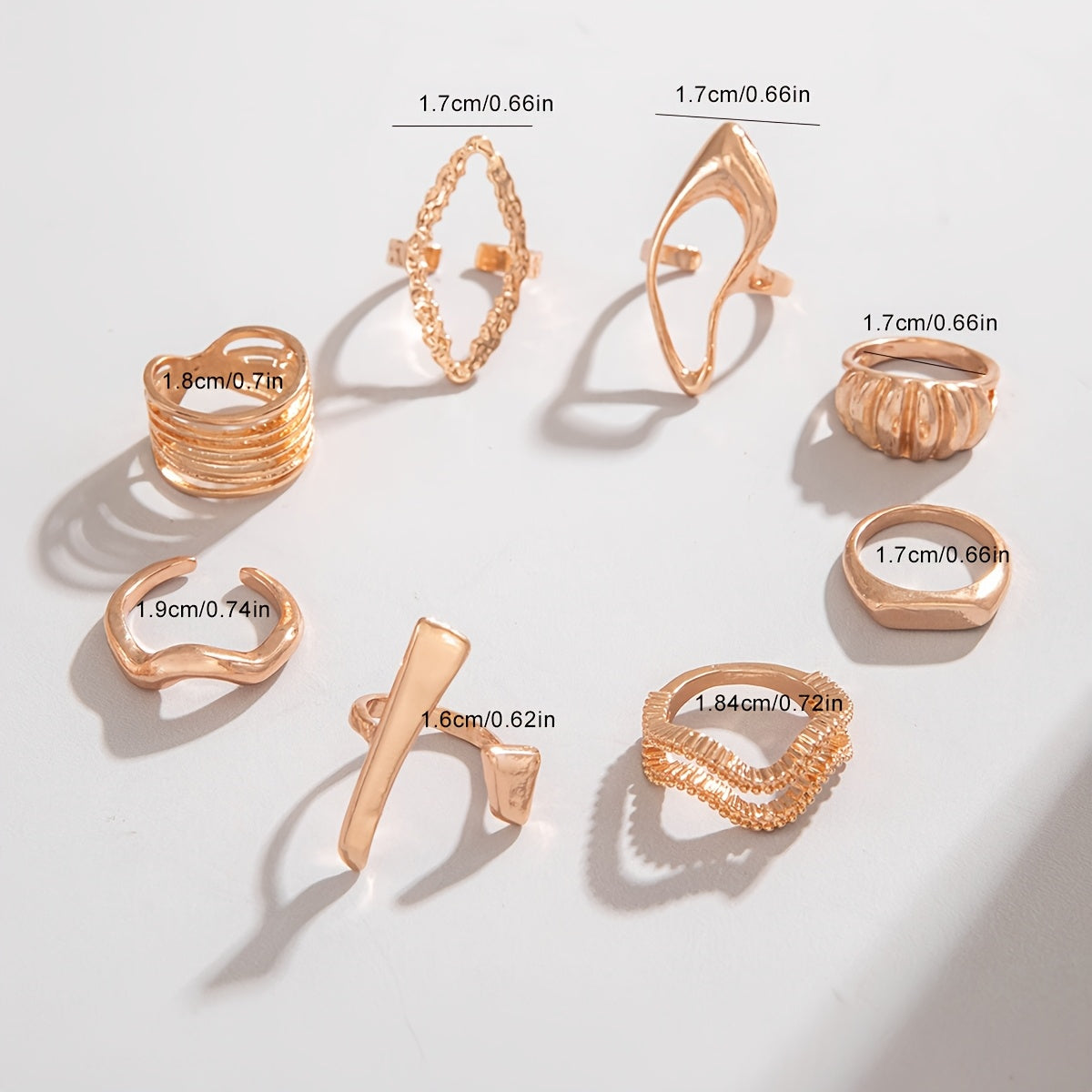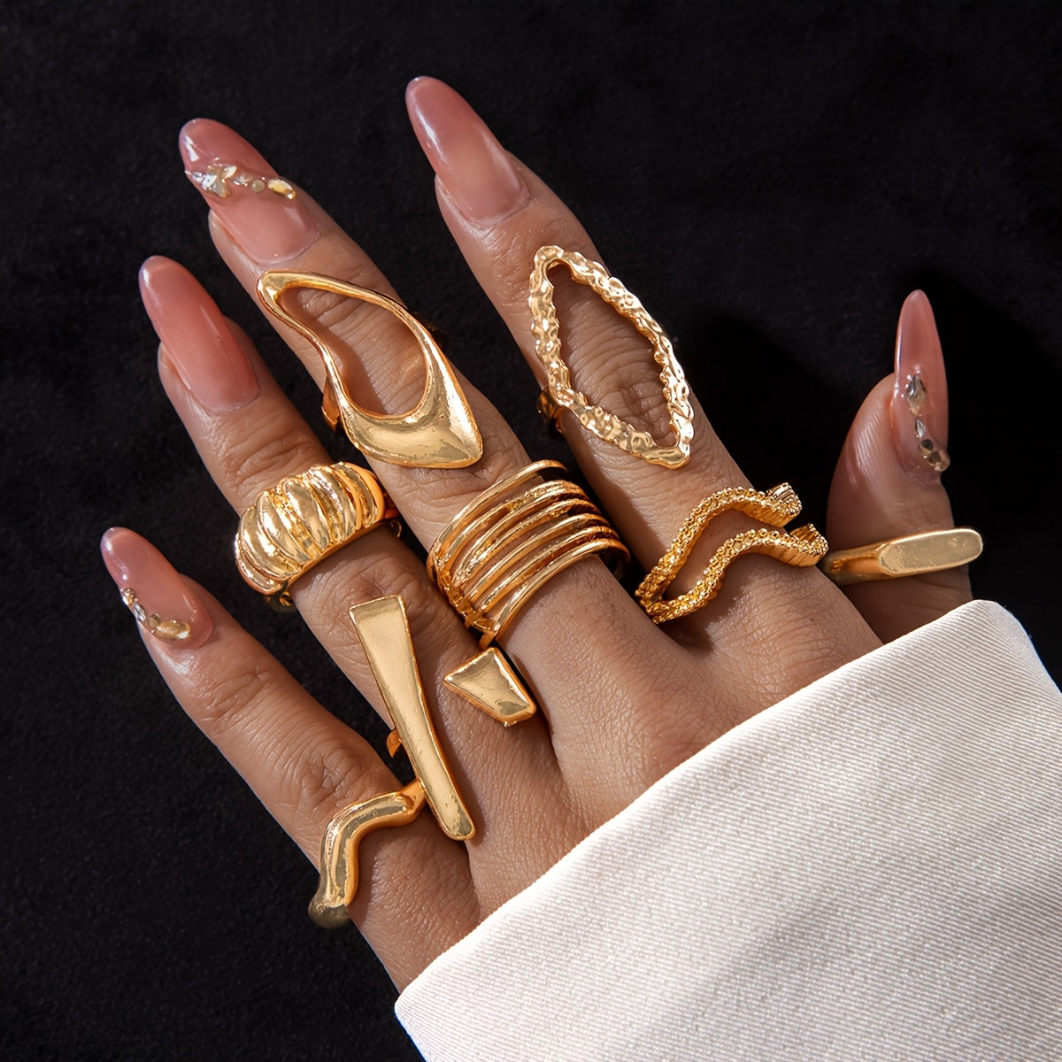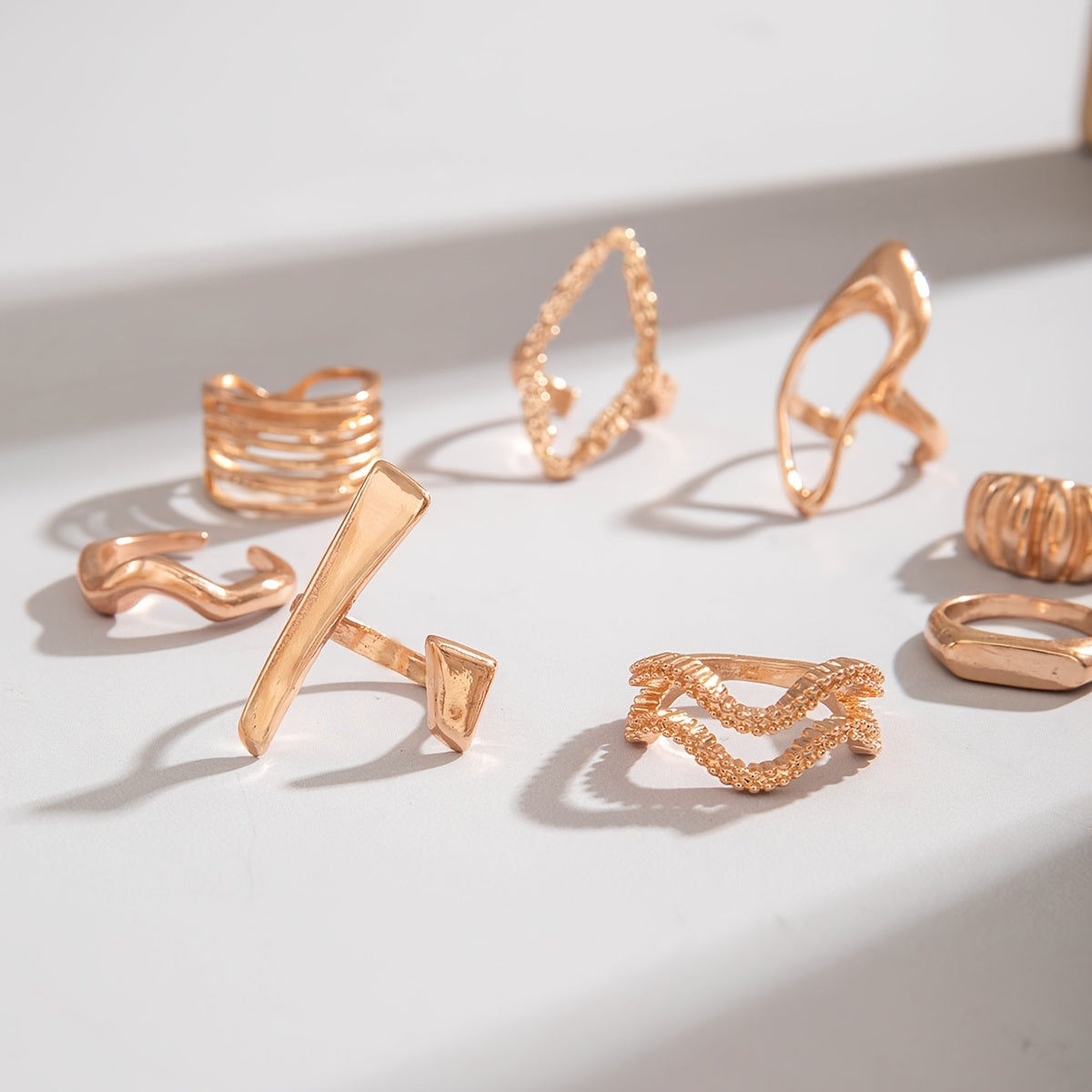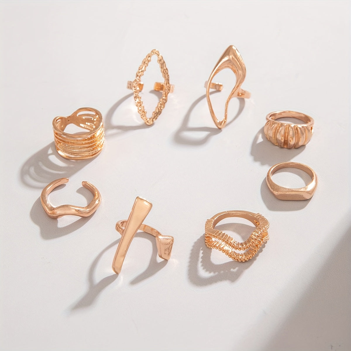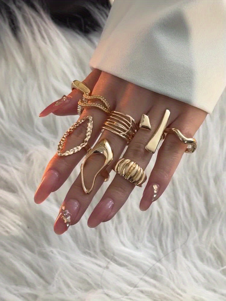 Elevate your style with this 8pcs set of metal rings featuring irregular rhombus and wave designs. Perfect for dance parties and other social events.