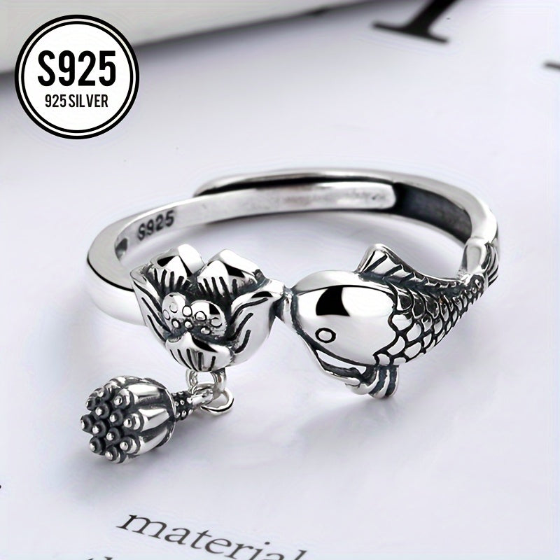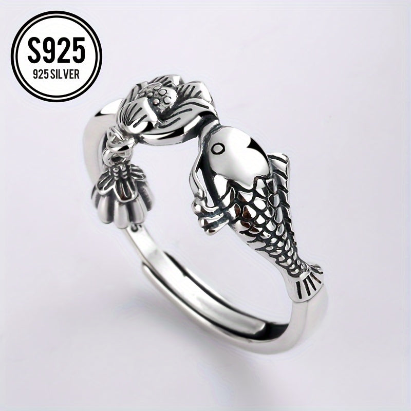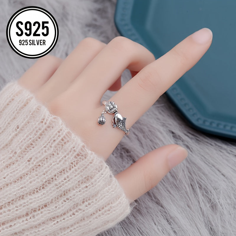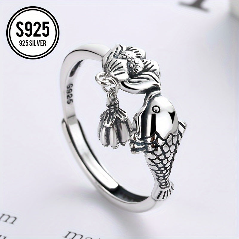 This elegant tassel food ring features a retro ethnic carp design in high-end 925 low allergy material. It's perfect for daily wear and makes a great Mother's Day gift for women.