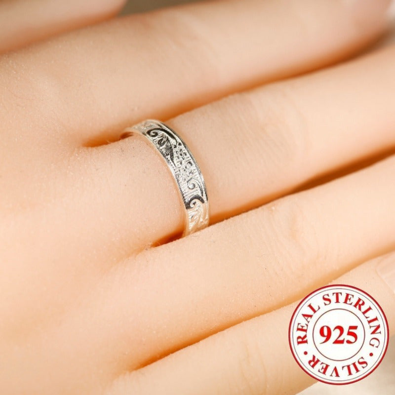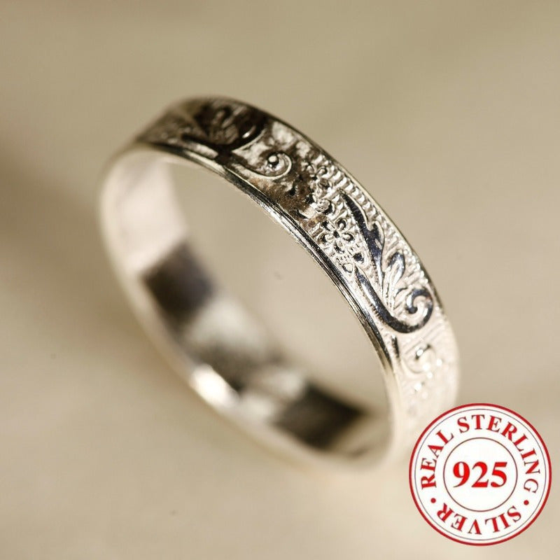 Elegant wide face ring made of 925 pure silver with retro engraved pattern, perfect for daily wear, parties, and banquets. Ideal as a jewelry gift.