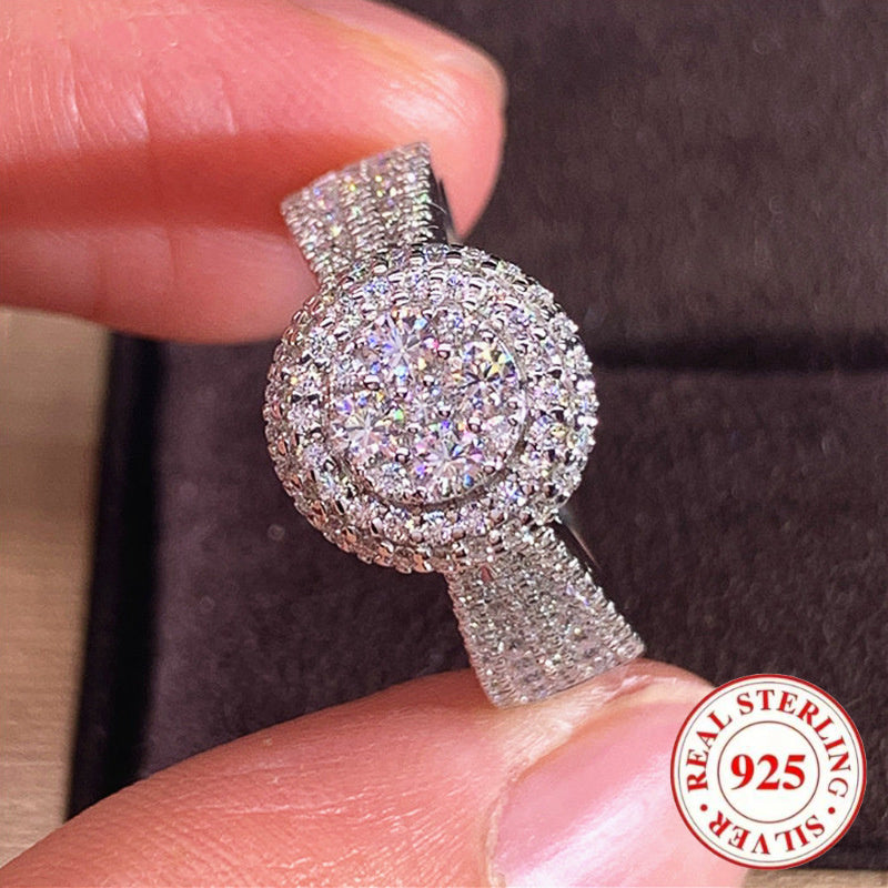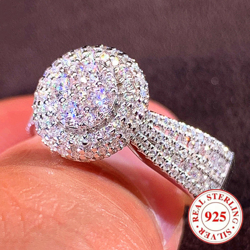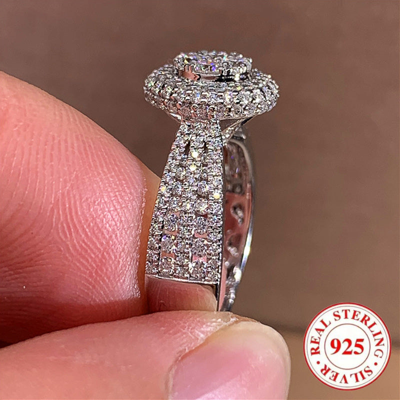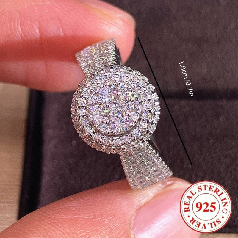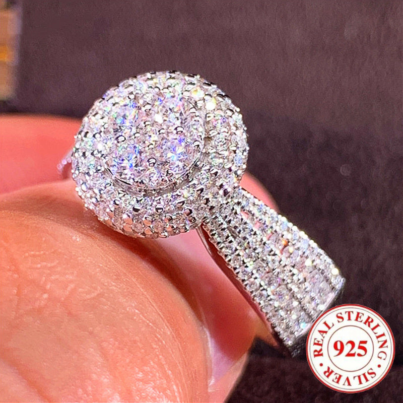 925 Pure Silvery Glamorous Ultra Shining Round Woman Ring for Party Banquet