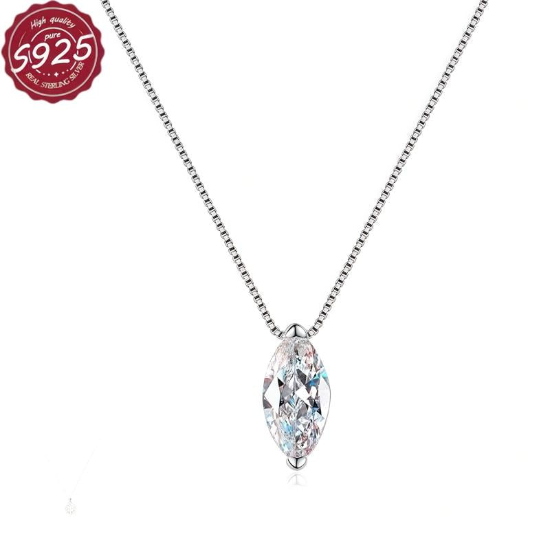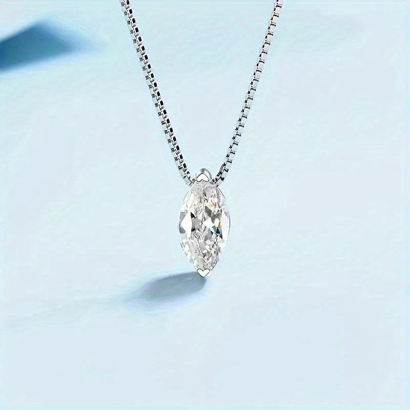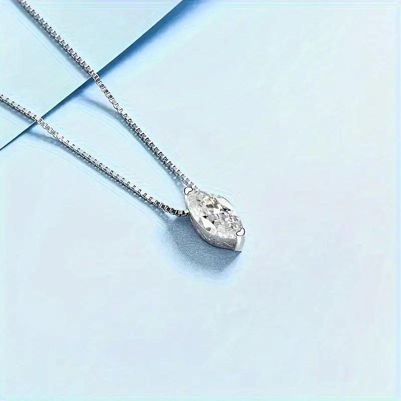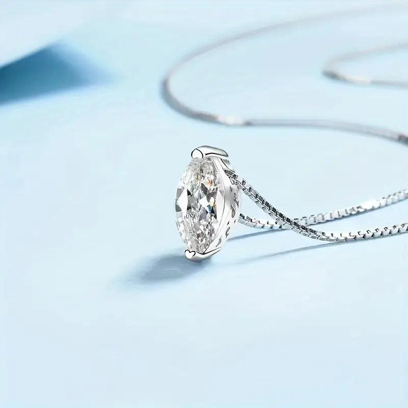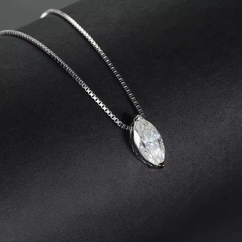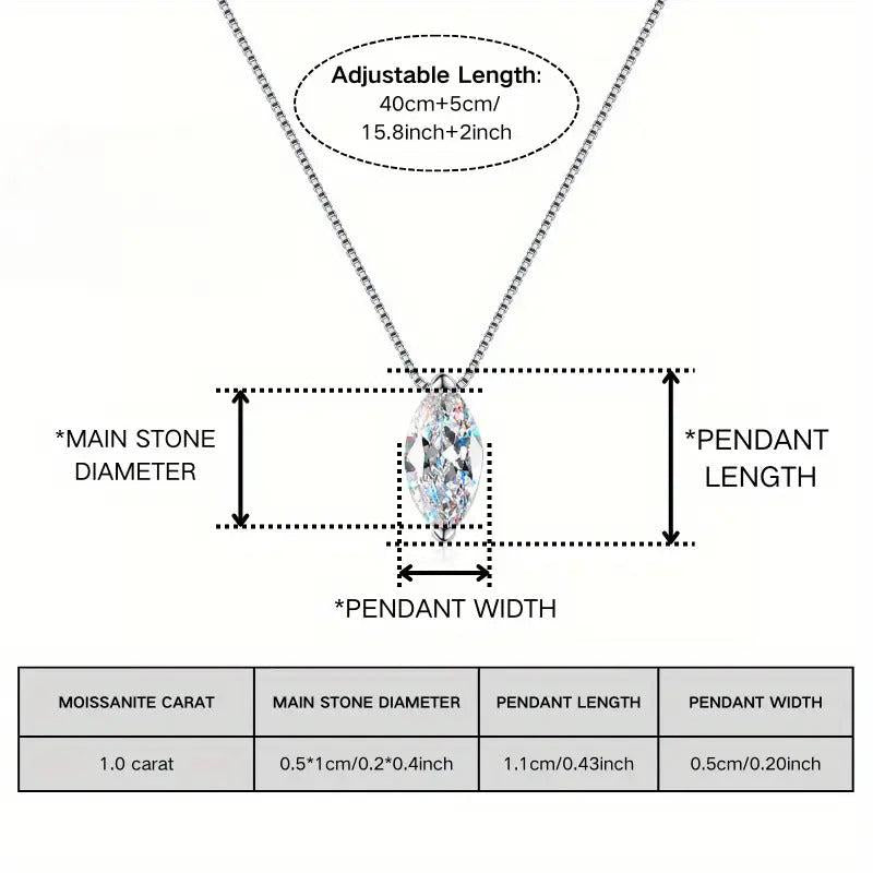 This stunning 925 silver necklace features a 1ct horse eye moissanite in a teardrop shape, making it a perfect gift for Christmas or any special occasion.