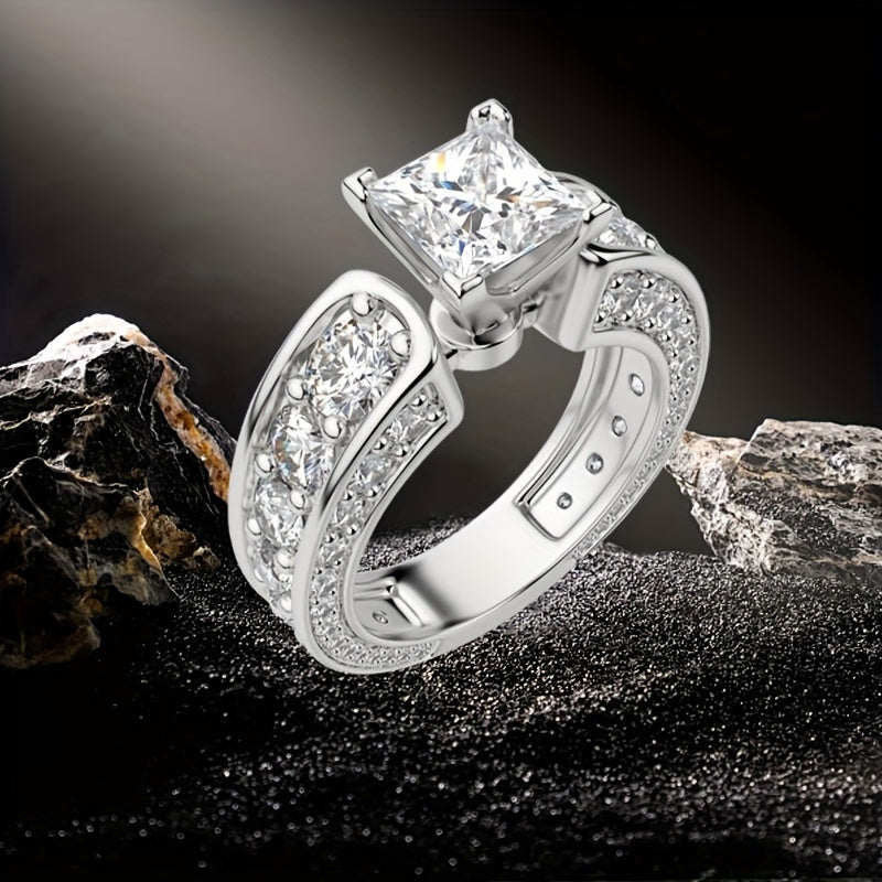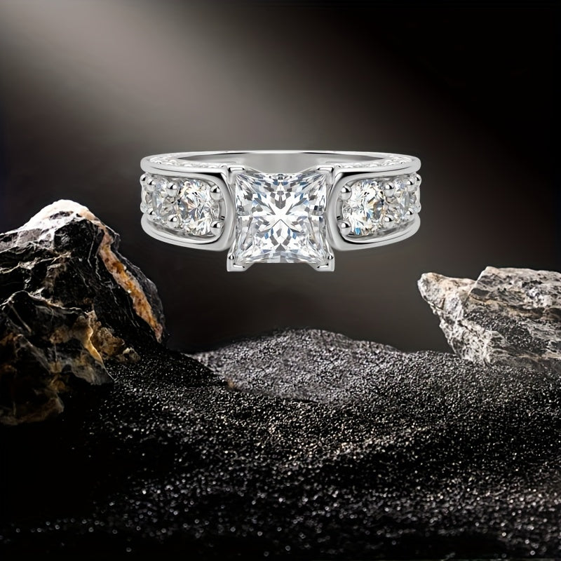 Elegant 925 sterling silver ring featuring a 5 carat princess cut moissanite, perfect for engagements, weddings, anniversaries, and promises.