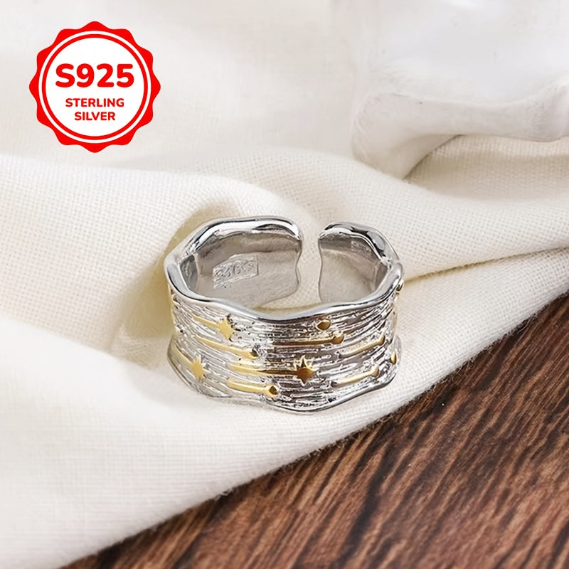 925 Silver Adjustable Opening Ring Matte Layer Line Cross Branch Ring