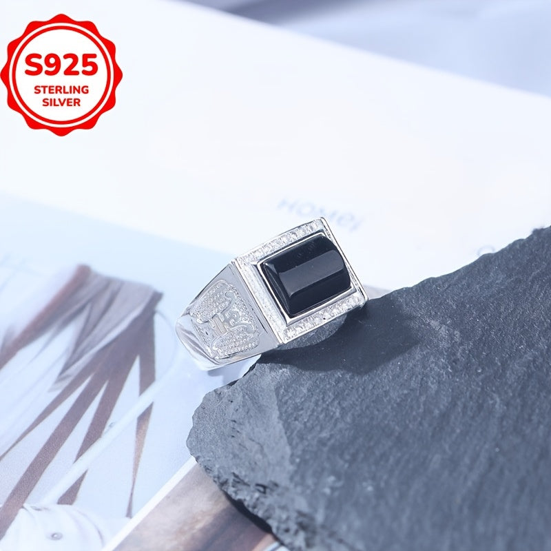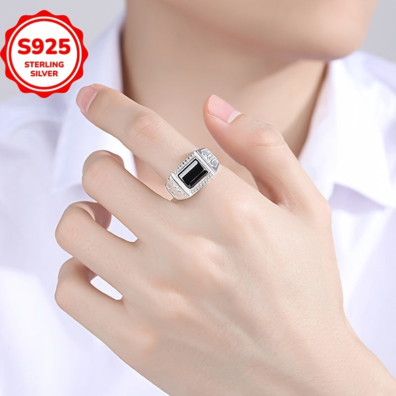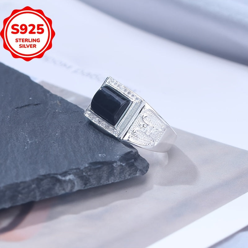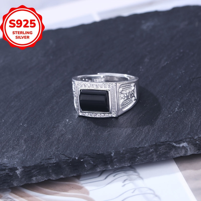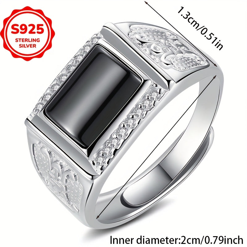This stunning ring features a synthetic gemstone set in 925 sterling silver. The band is adjustable for a perfect fit and hypoallergenic for sensitive skin.
