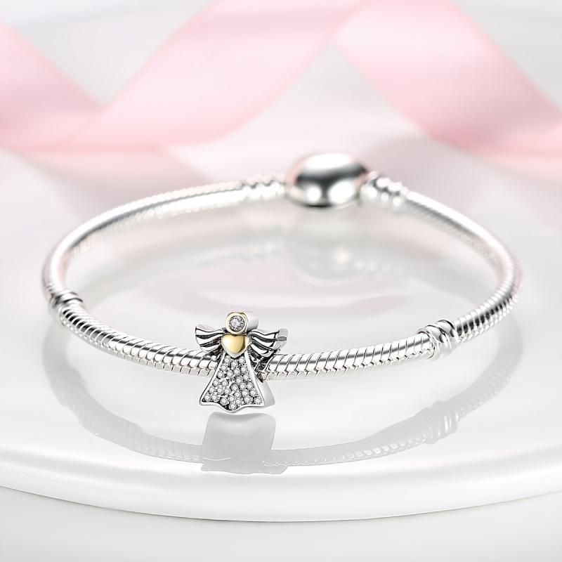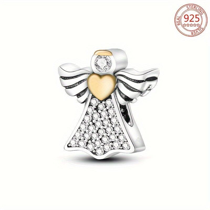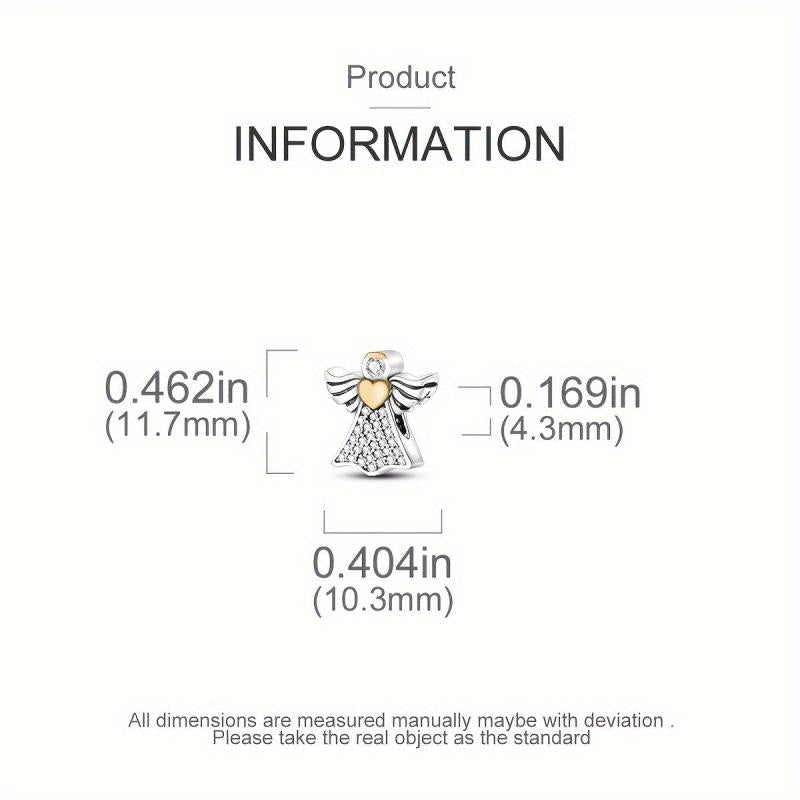 Adorn your DIY jewelry with this stunning 925 sterling silver angel charm featuring a golden heart zirconia. Perfect for bracelets and necklaces, this charm is a beautiful gift for women.