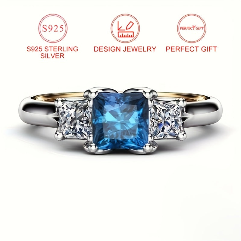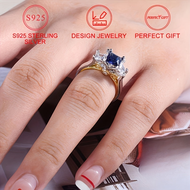 This stunning women's anniversary ring features a square synthetic created sapphire in a two-tone design. Perfect for engagement, proposal, wedding or as a special gift.