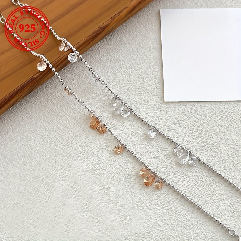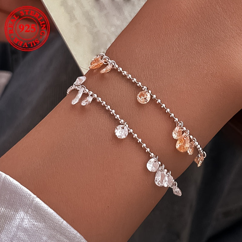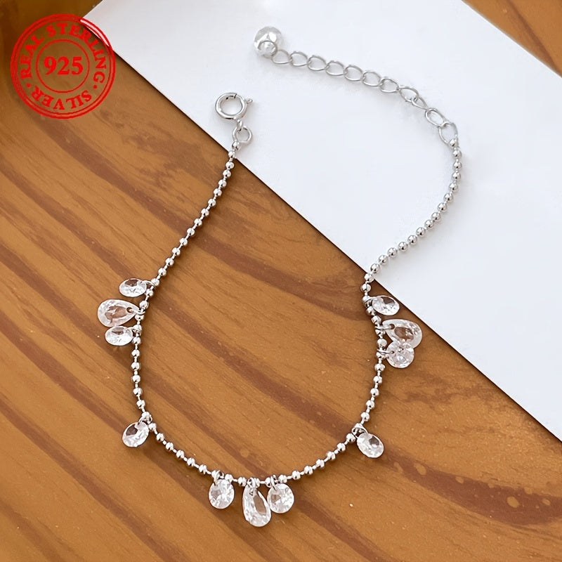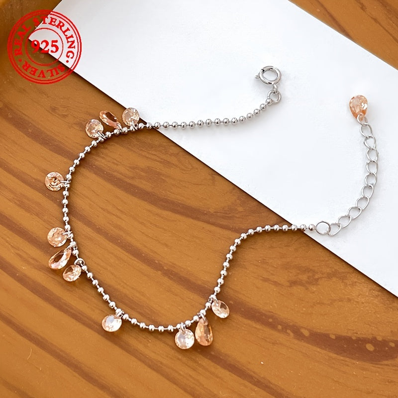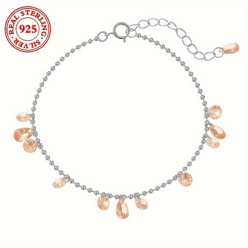 Elegant 925 sterling silver bracelet featuring water droplet design with synthetic zirconia October birthstone. Perfect for daily wear or parties.