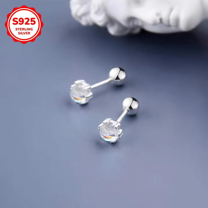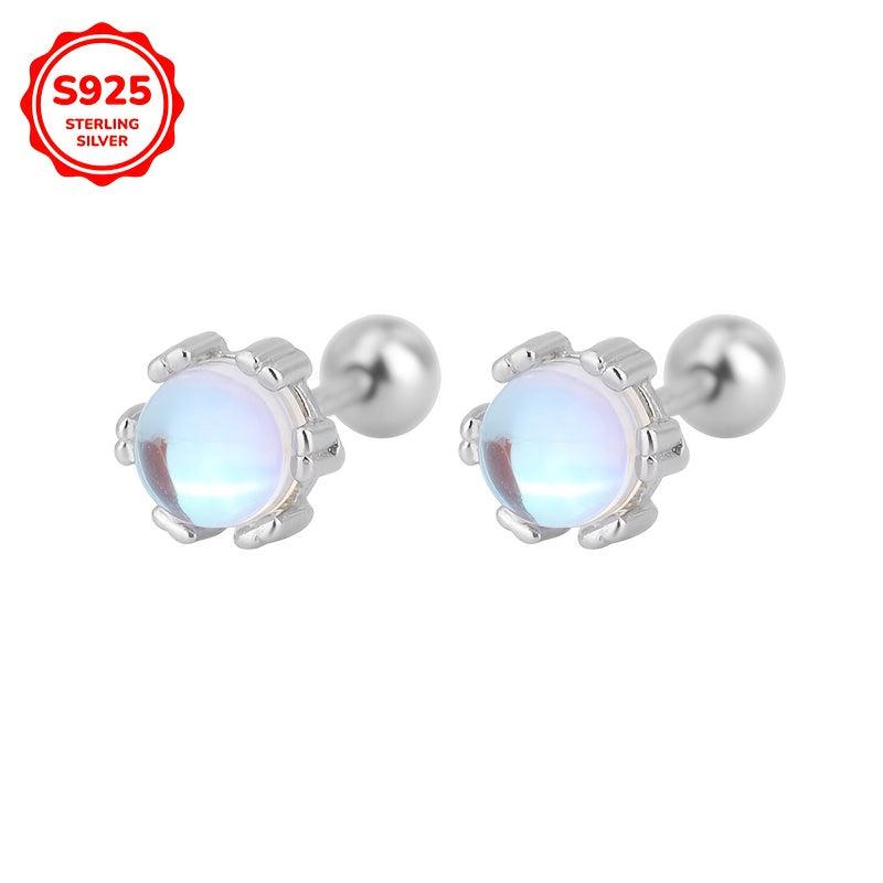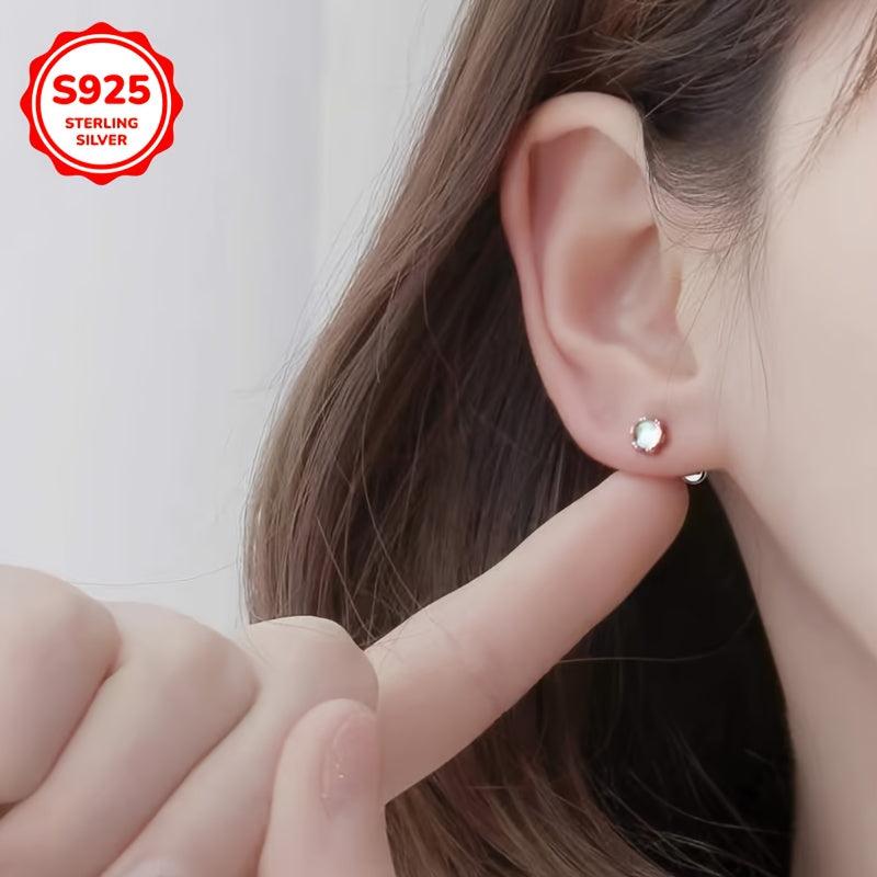 925 Silver Cat's Eye Stud Earrings Minimalist Women Jewelry
