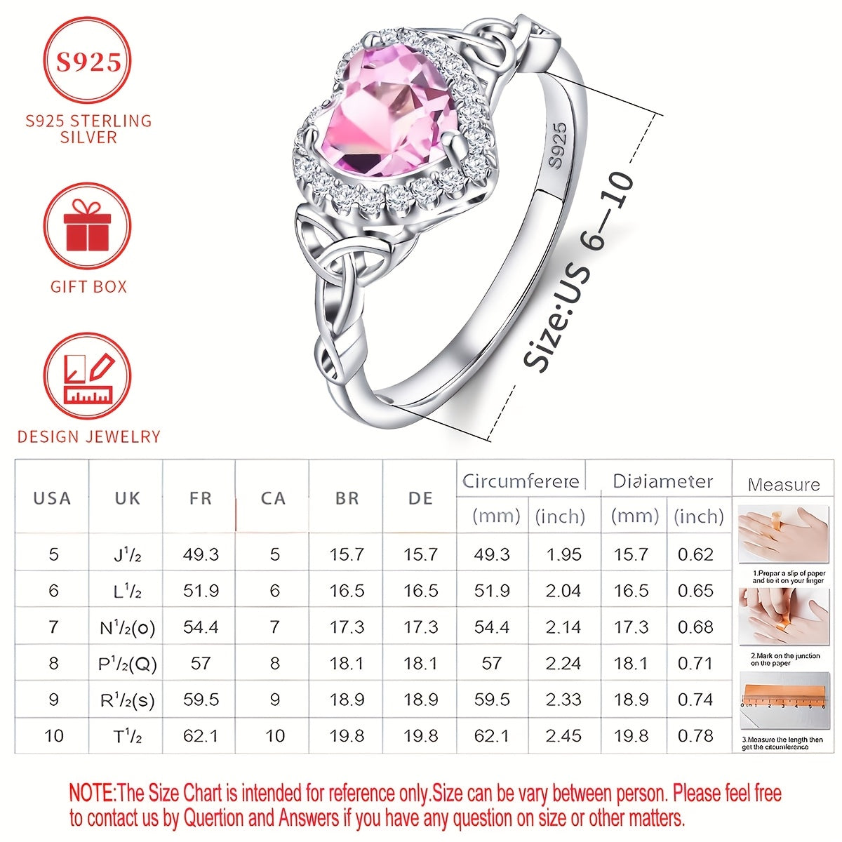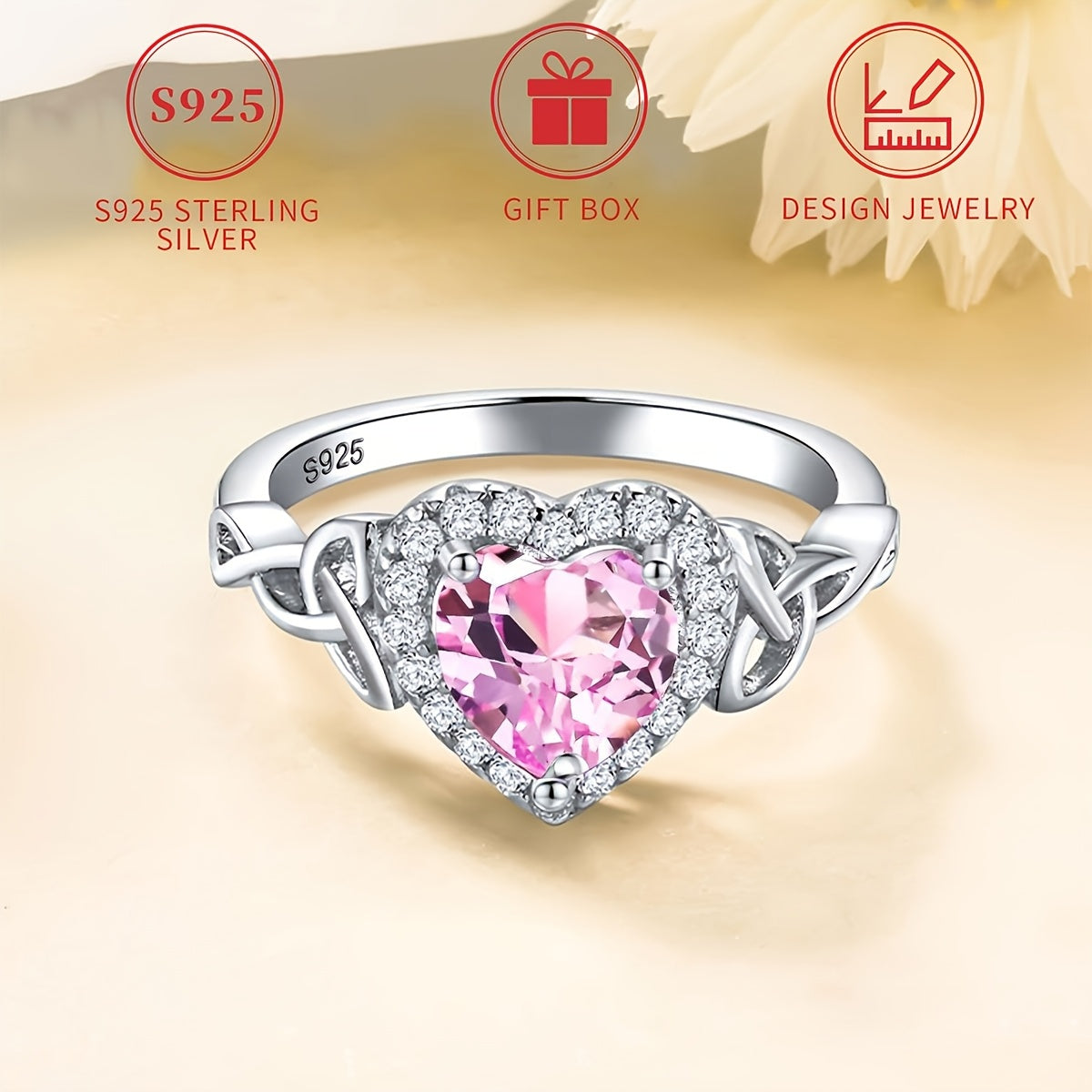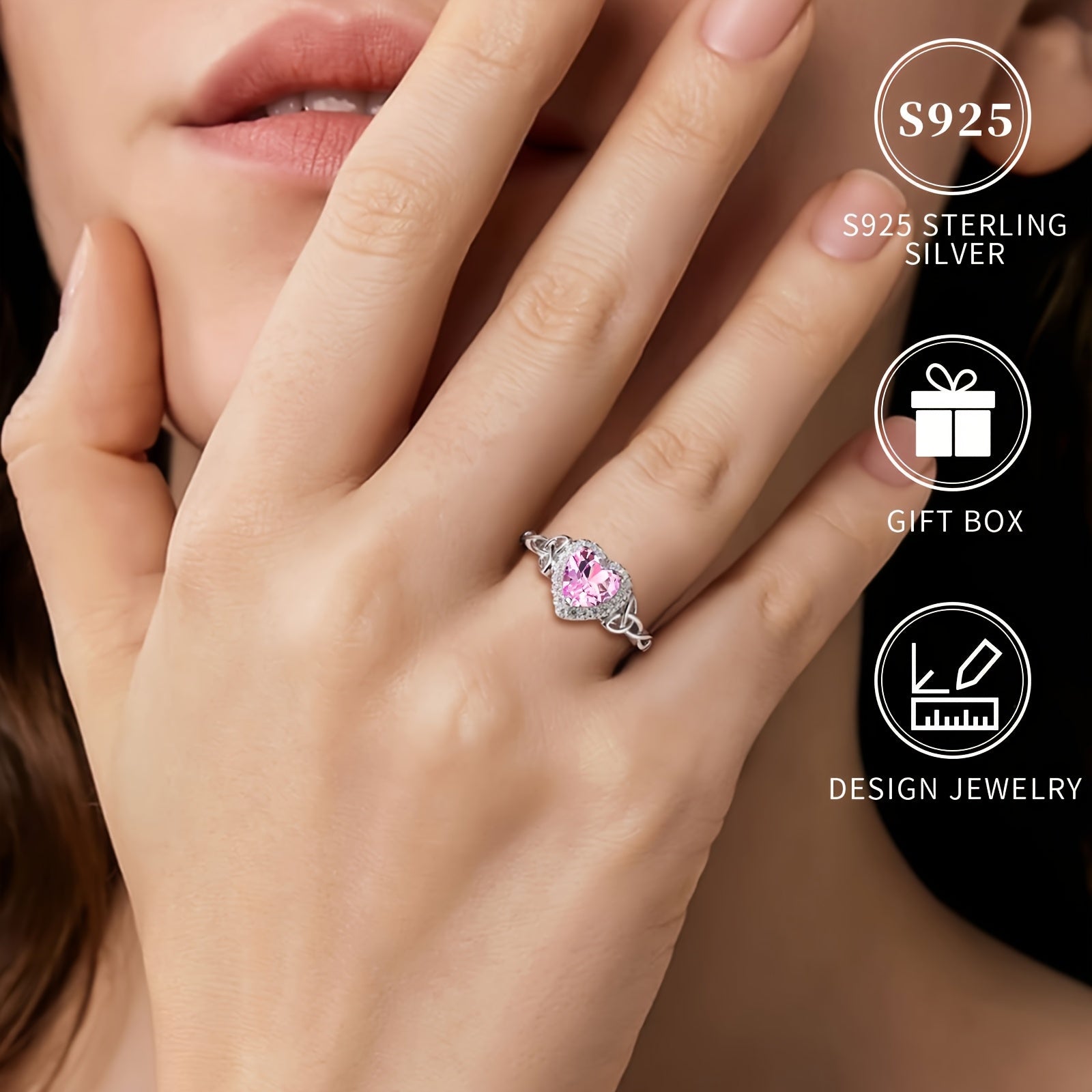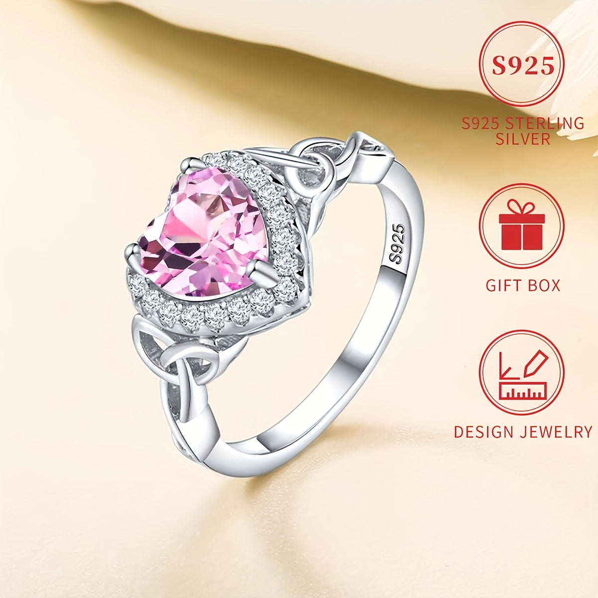 This stunning 925 sterling silver ring features a Celtic knot design with a heart-shaped pink cubic zirconia stone. Perfect for birthdays, Valentine's Day, and anniversaries.