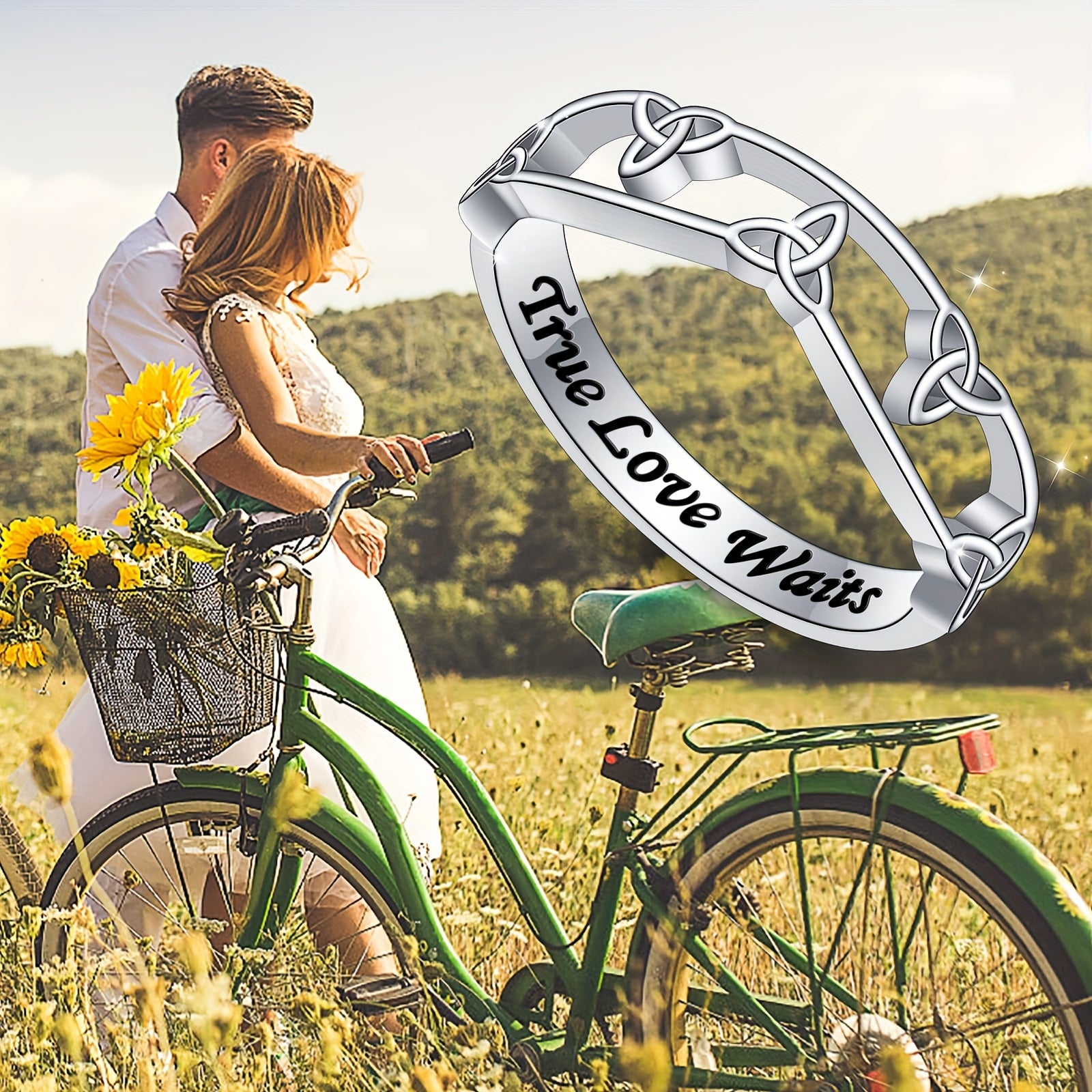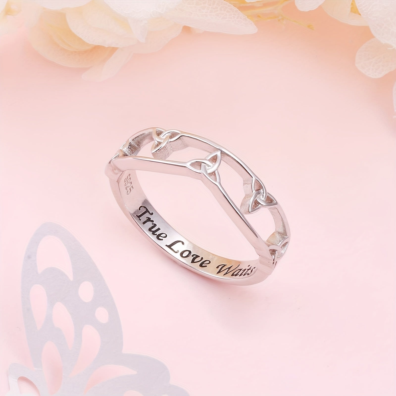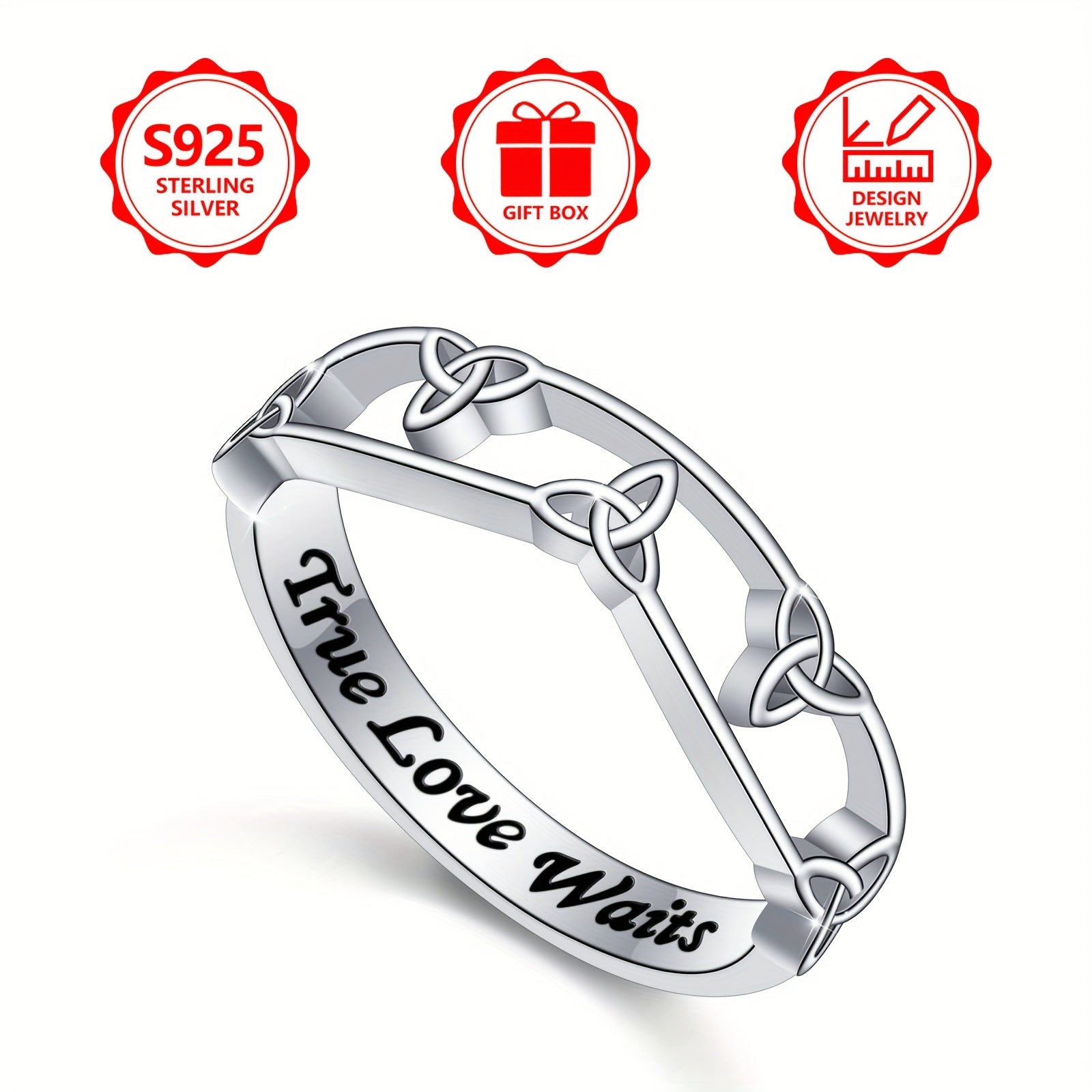 925 Silver Celtic Knot Ring for Women Classic Engraving True Love Waits