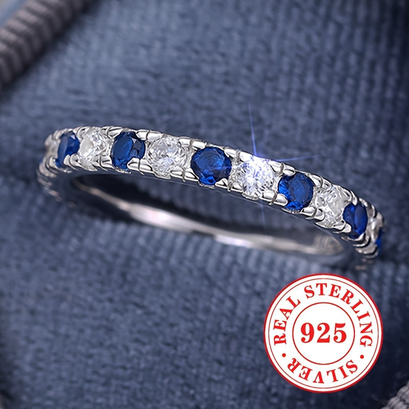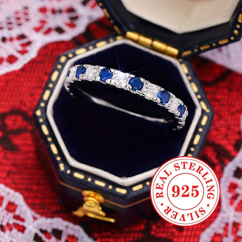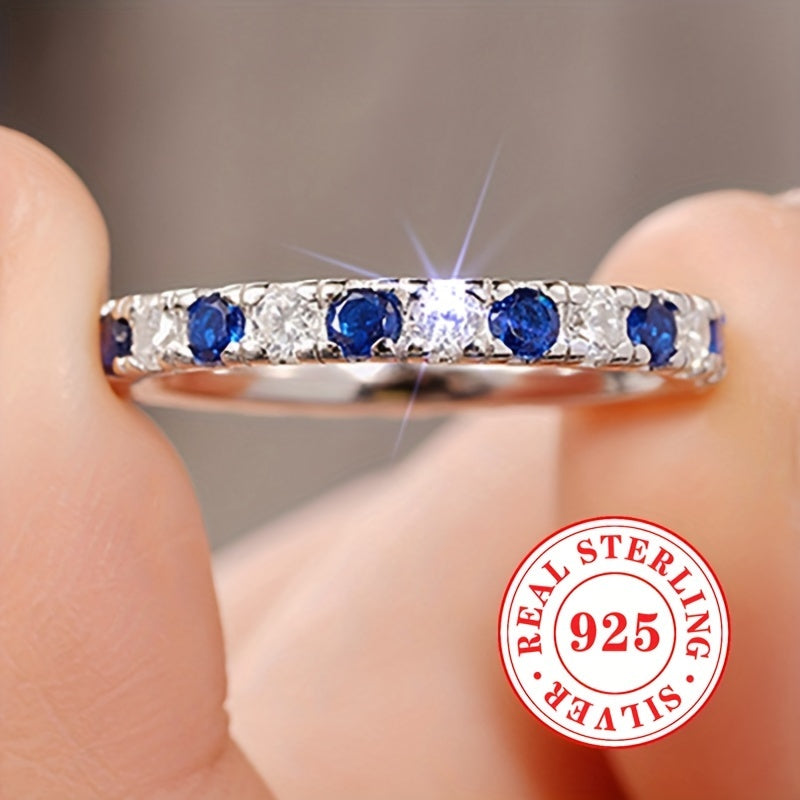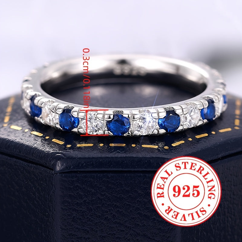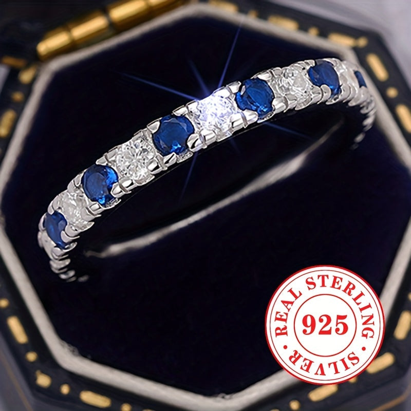 Elegant and timeless, this 925 sterling silver ring features synthetic zirconia stones. Perfect for any occasion, from weddings to everyday wear.