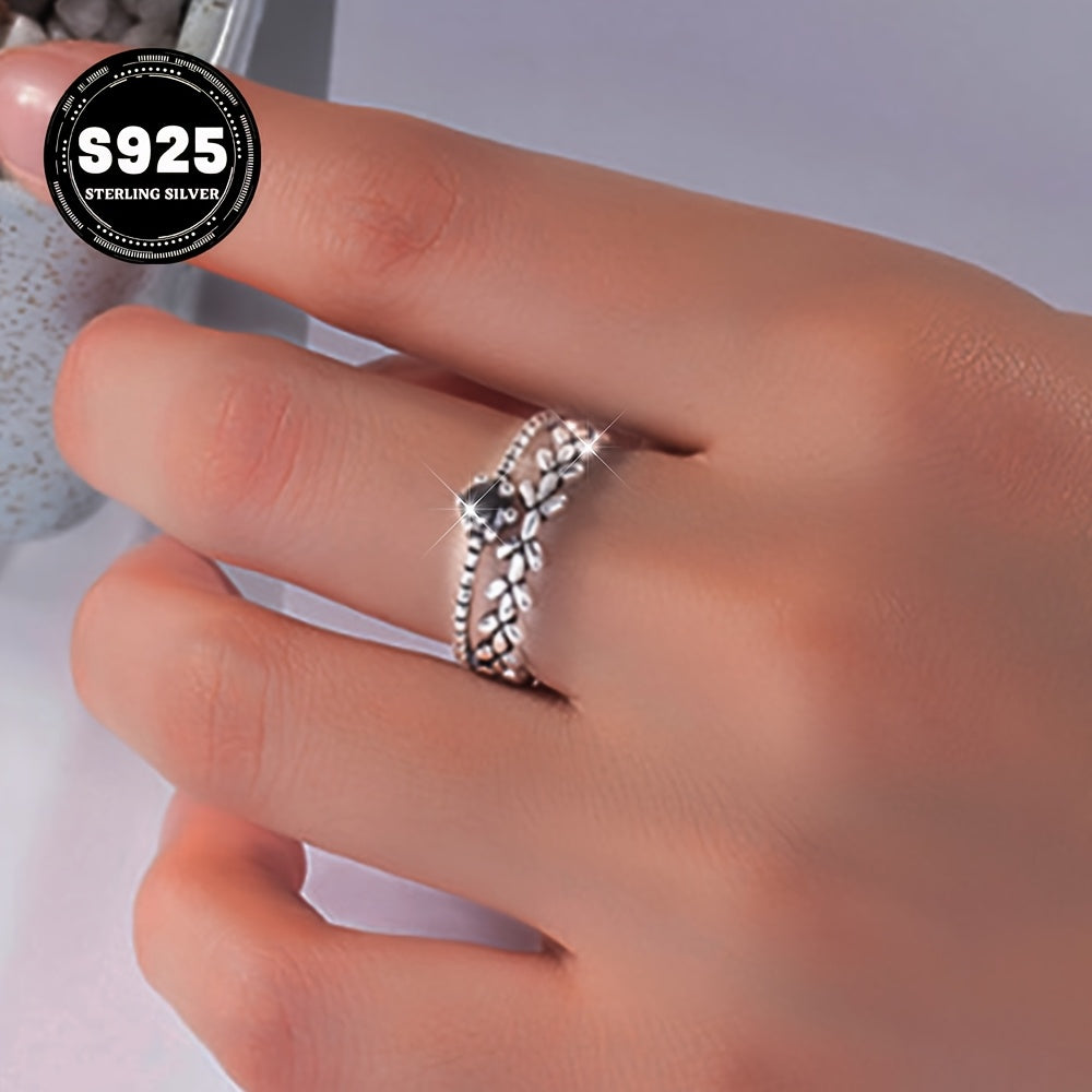 Vintage-inspired 925 sterling silver open ring featuring cubic zirconia twist design. Ideal for daily wear, travel, parties, and as a gift for loved ones.