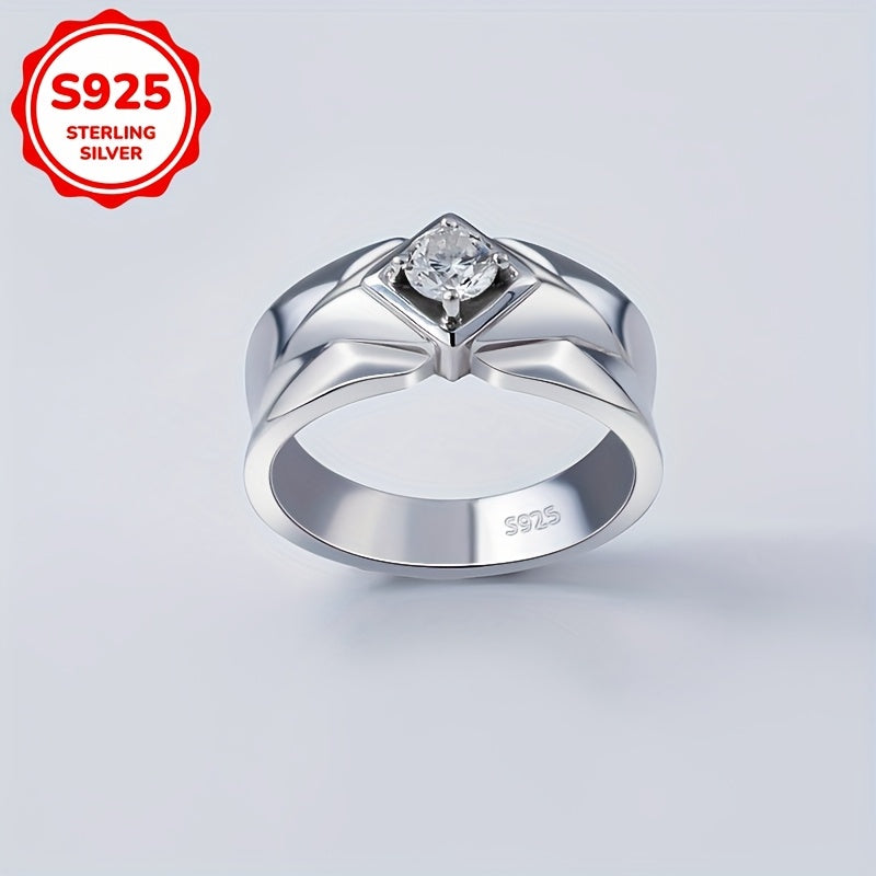 Elegant women's ring with high-end diamond-shaped zirconia set in sleek 925 silver, ideal for daily wear or special occasions like weddings.