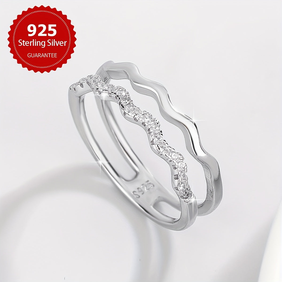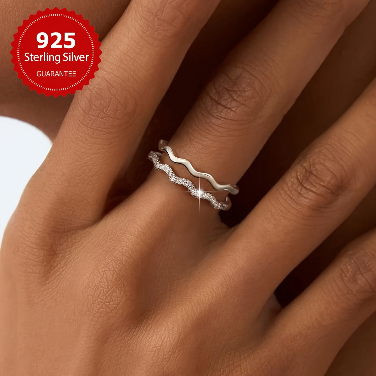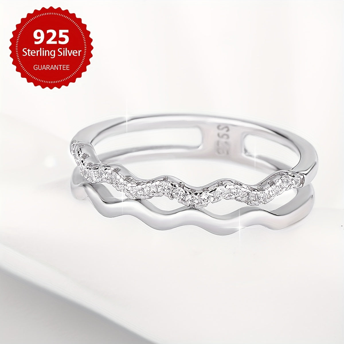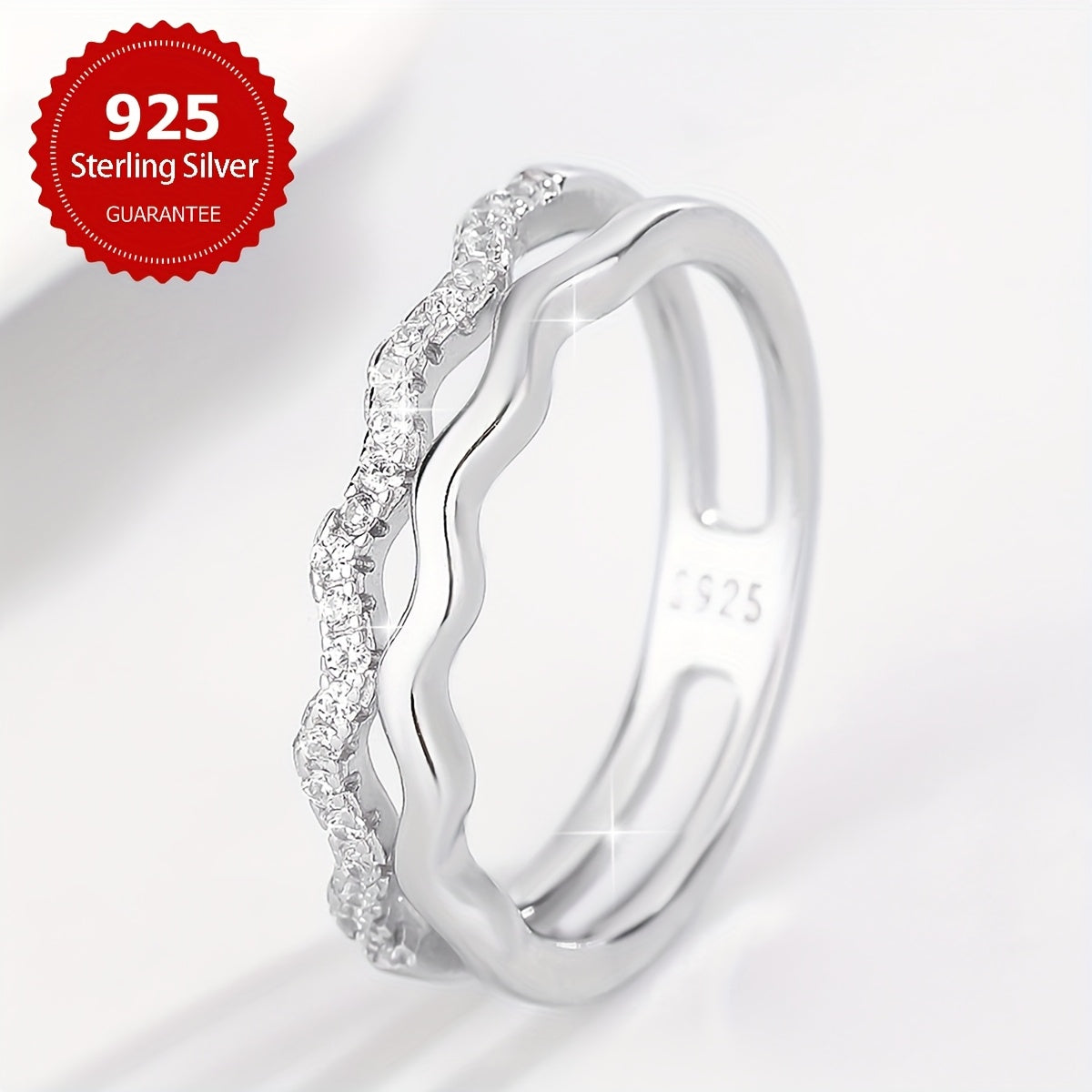 This stunning ring features two bands of 925 sterling silver and sparkling cubic zirconia stones. Perfect for any special occasion!