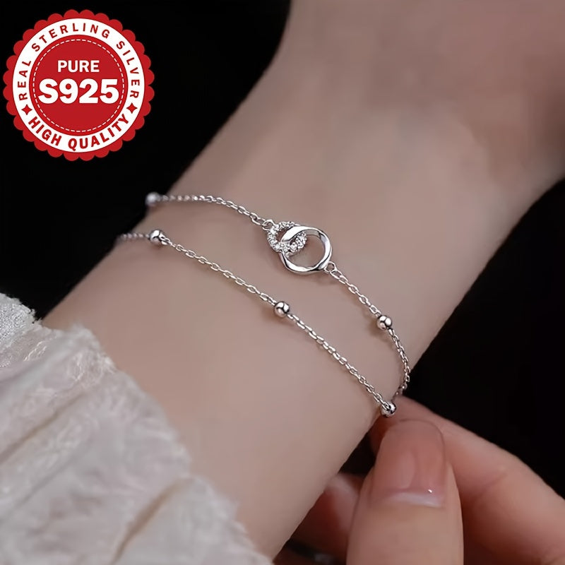 925 Silver Double Circle Bracelet with Cross Beads, Hypoallergenic