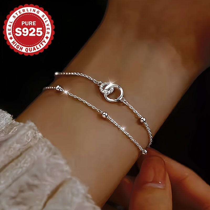 This double layered circle bracelet is made of 925 sterling silver and features cross beads. It weighs 2.6g, making it a perfect gift for her for daily wear or as a Valentine's accessory.