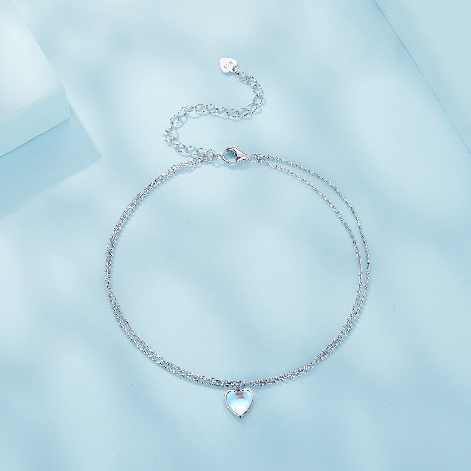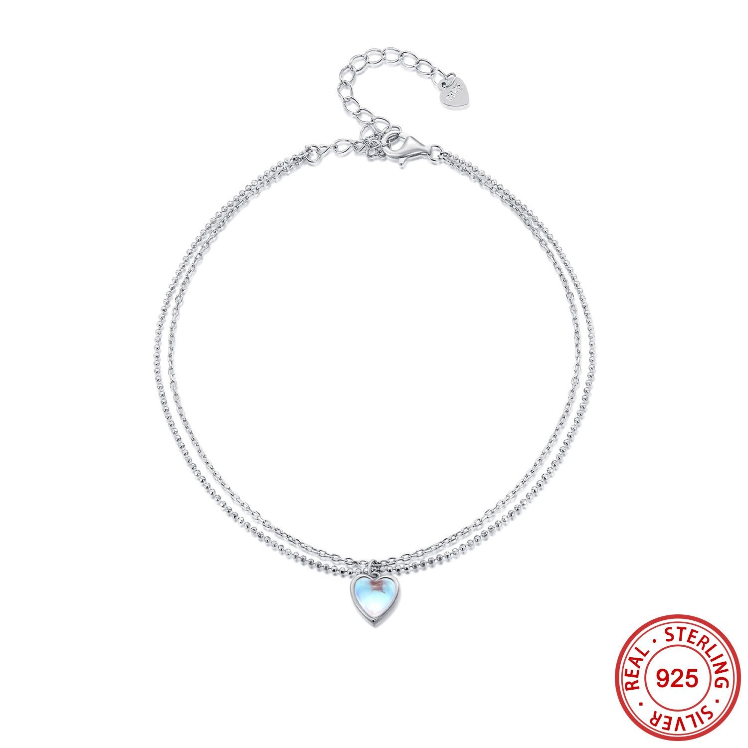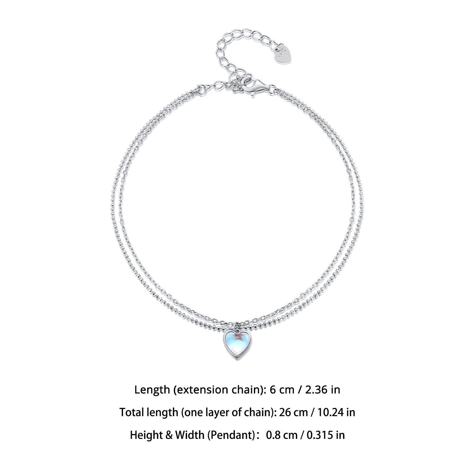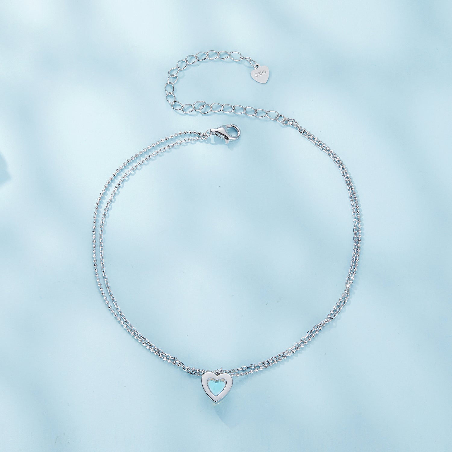 This anklet features a double layers chain design with love heart charm. Made of 925 sterling silver, it is a trendy accessory for your ankles.