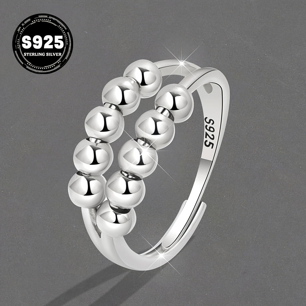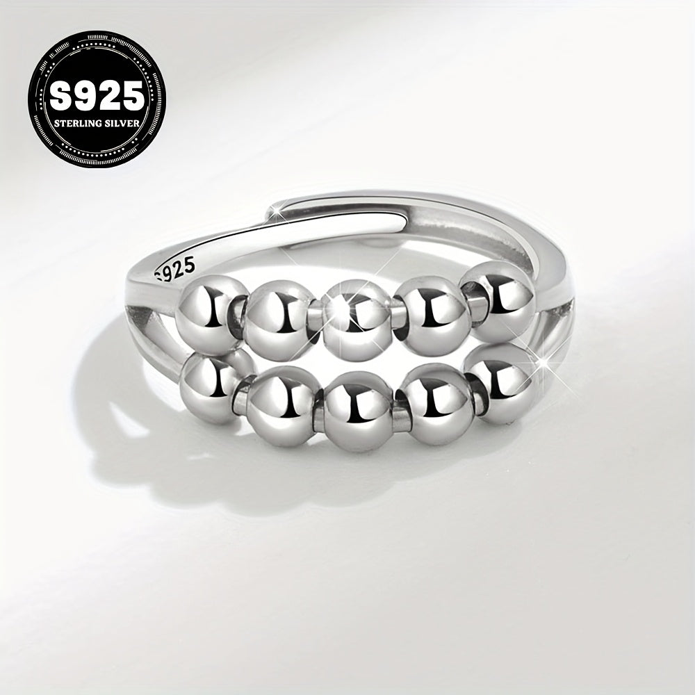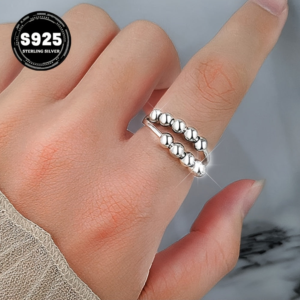 A hip hop style 925 sterling silver ring with a double twist bead design that is adjustable for a perfect fit. This durable everyday accessory is an ideal gift for friends and family during festive occasions.