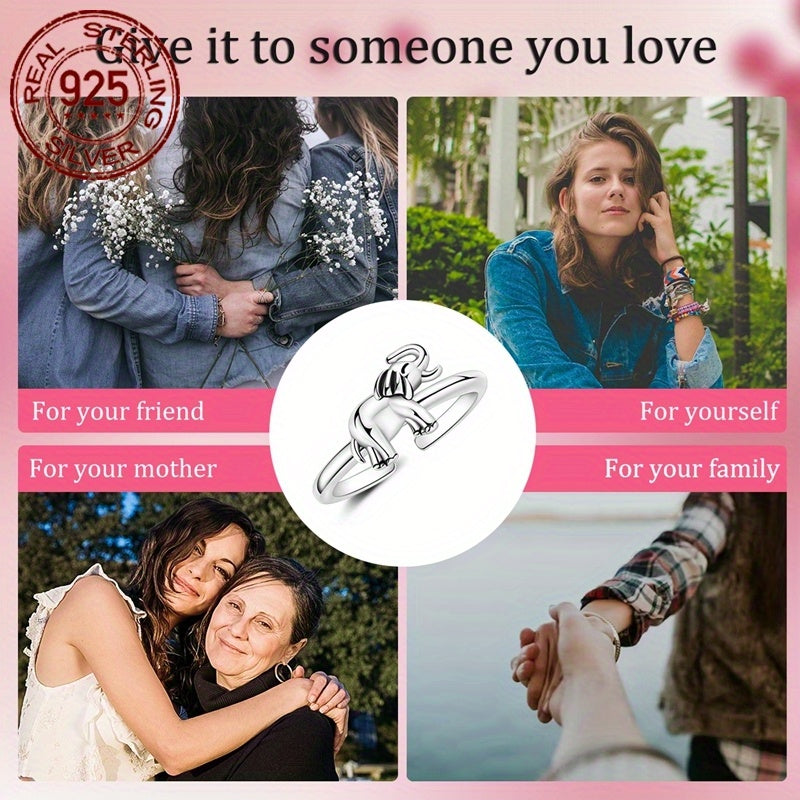 This stunning 925 sterling silver ring features an elephant design with sparkling stones, perfect for weddings, birthdays, Christmas, and Valentine's Day. It's a low allergenic option for women.
