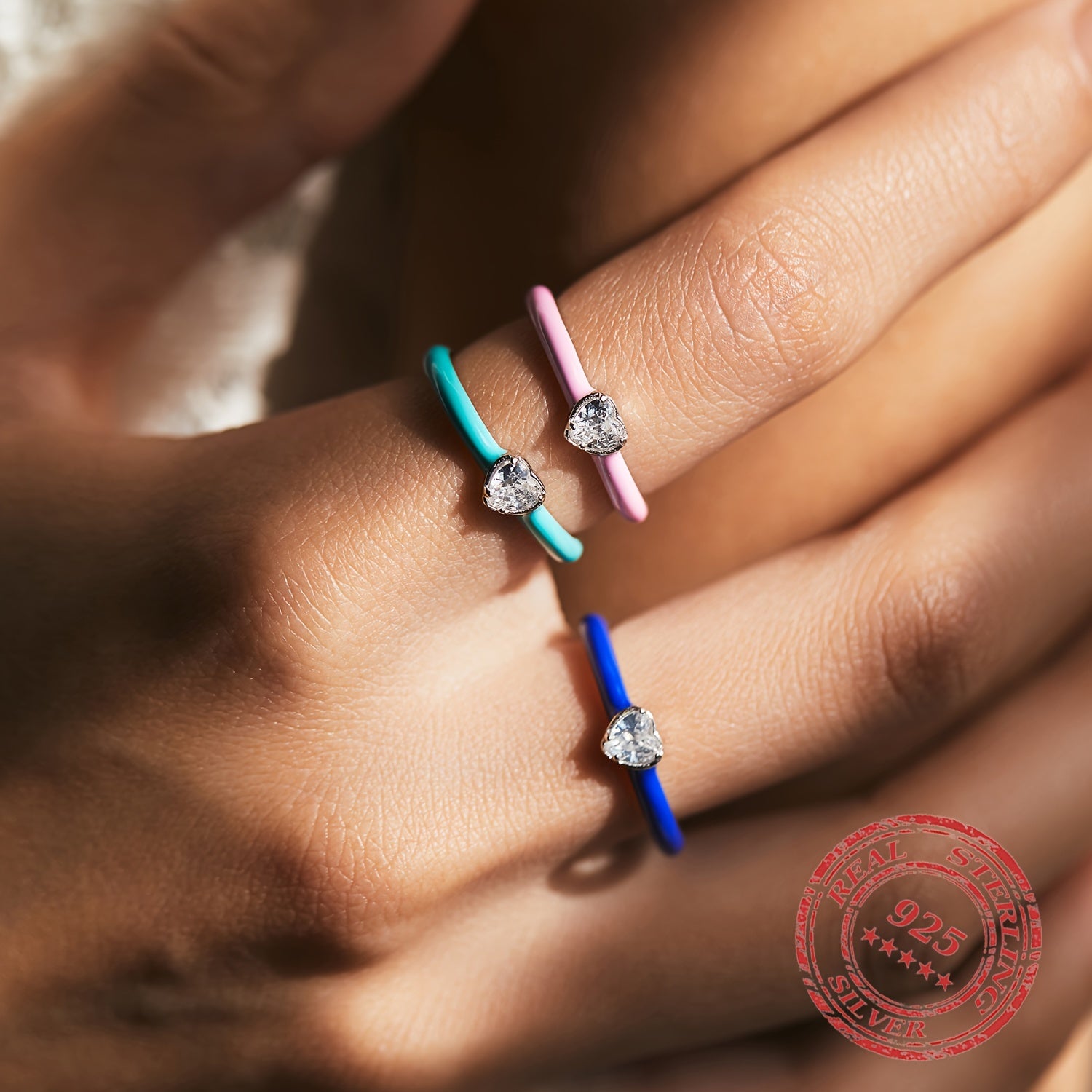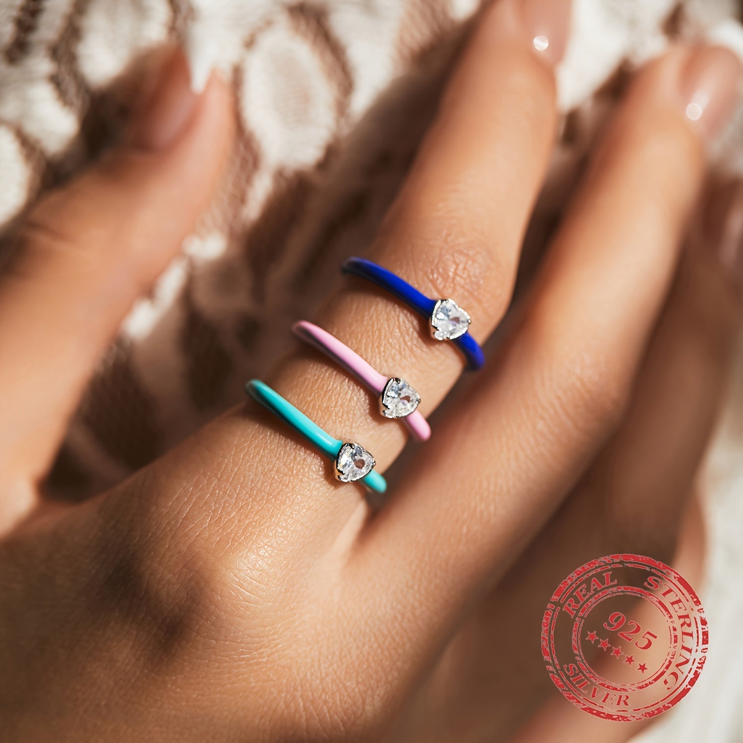 Add a colorful touch to your look with this stackable finger ring featuring Klein enamel hearts. Perfect for a romantic party or as a gift for women.