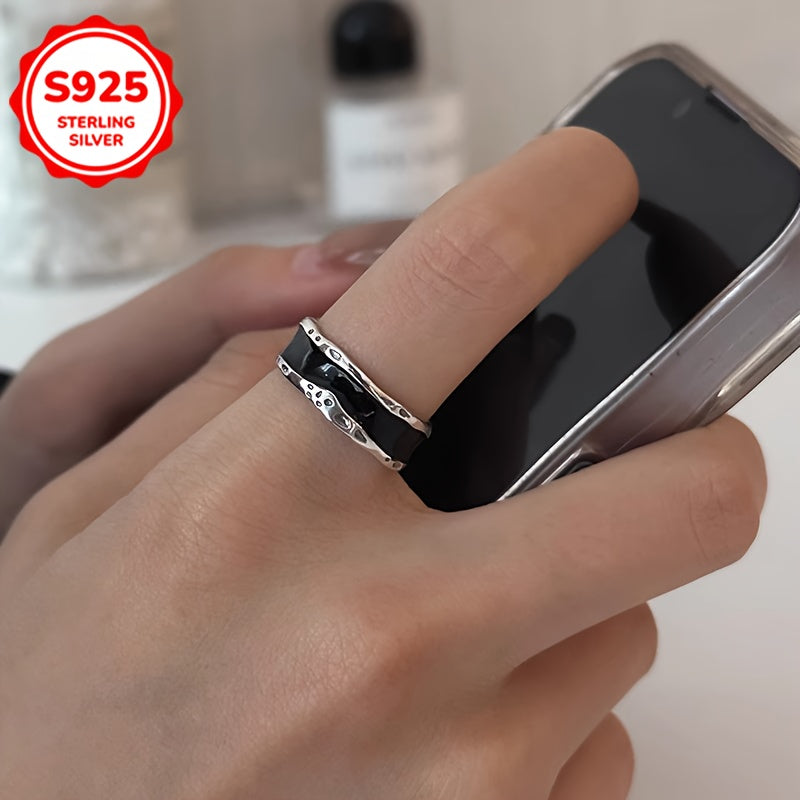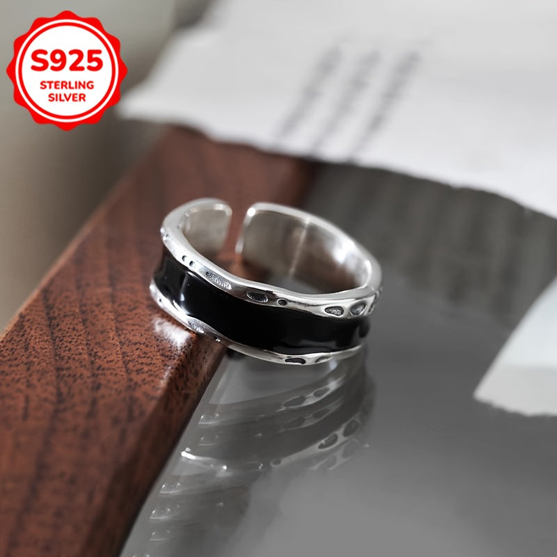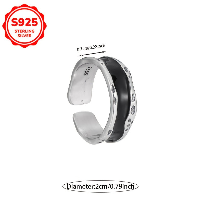 This 925 sterling silver epoxy ring features an irregular convex wide band design that is adjustable to fit different finger sizes. It is hypoallergenic and perfect for women. Makes a great gift for couples.