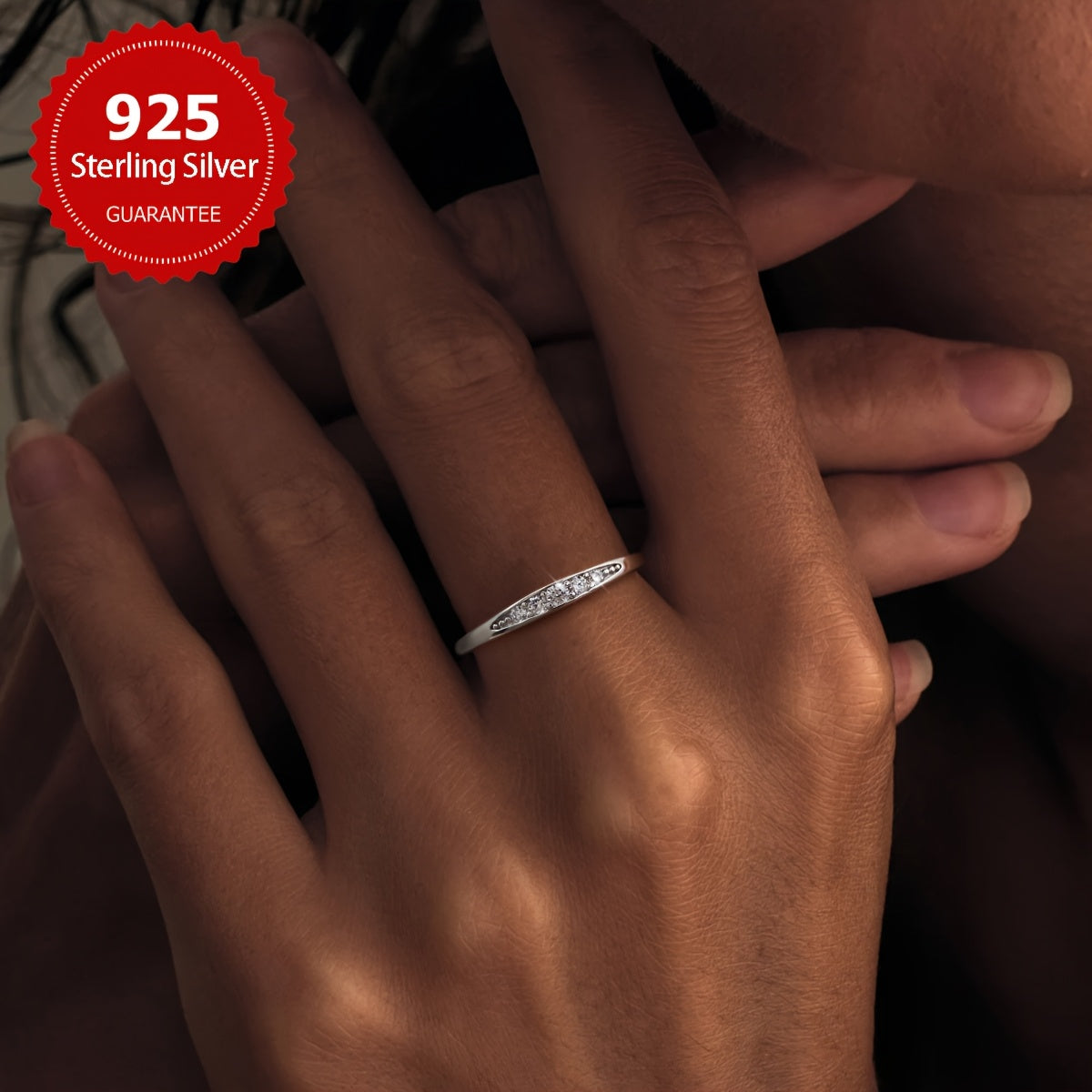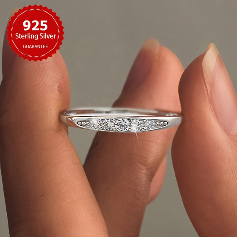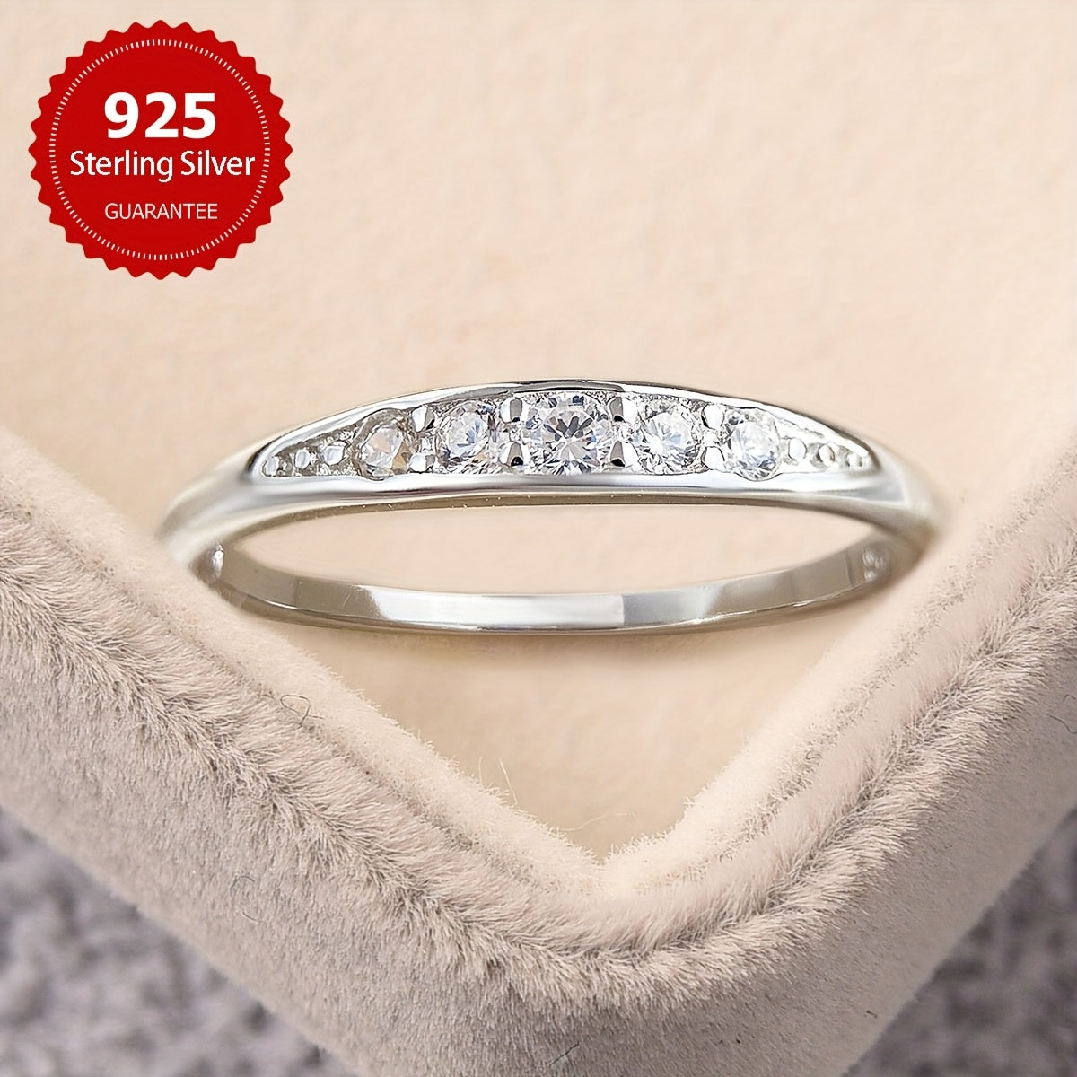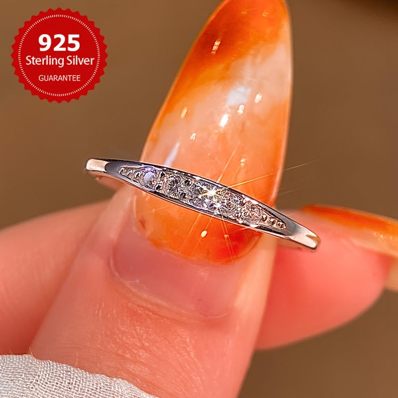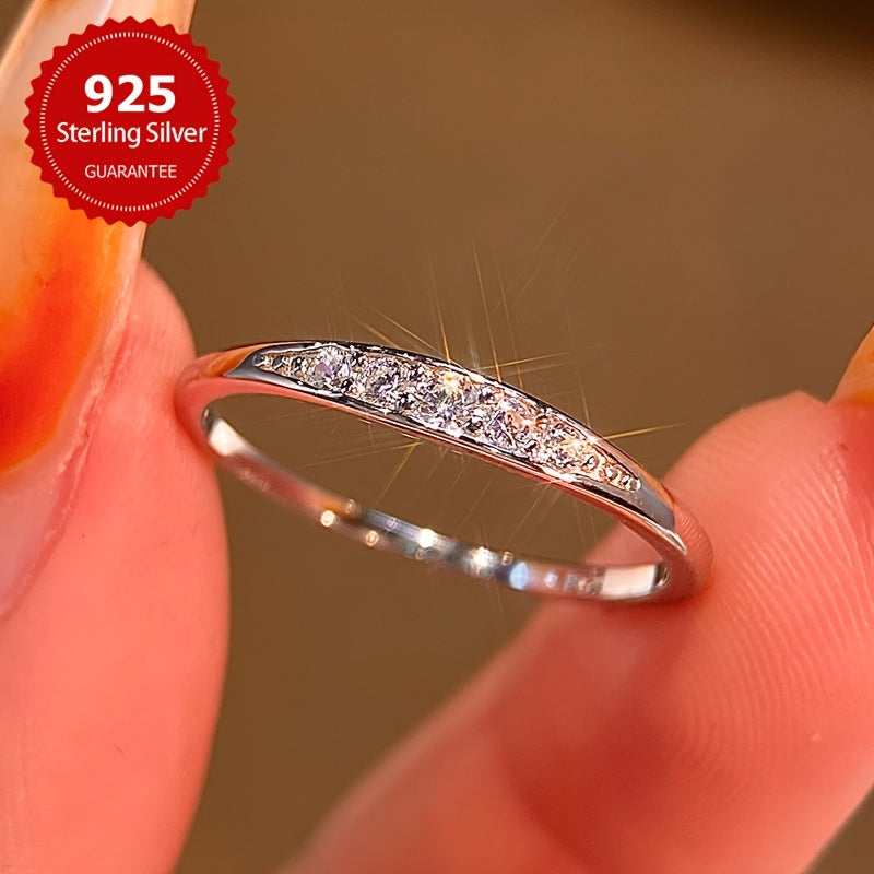 925 Silver Eternity Ring Platinum Plated Zirconia Inlaid Jewelry for Women