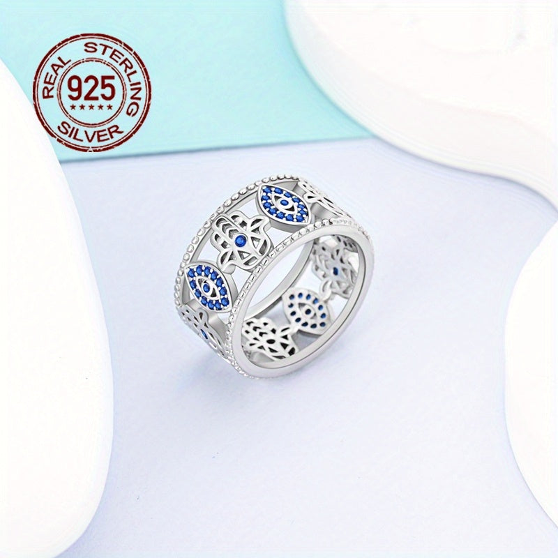Get this stunning 925 sterling silver ring featuring an eye and palm design with sparkling cubic zirconia. Perfect for weddings, parties, birthdays, and Christmas.
