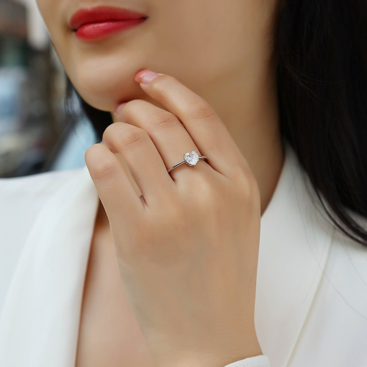This versatile couple ring for women features a heart-shaped Moissanite stone set in 925 Silver. Perfect for banquets, birthdays, formal settings, and parties.