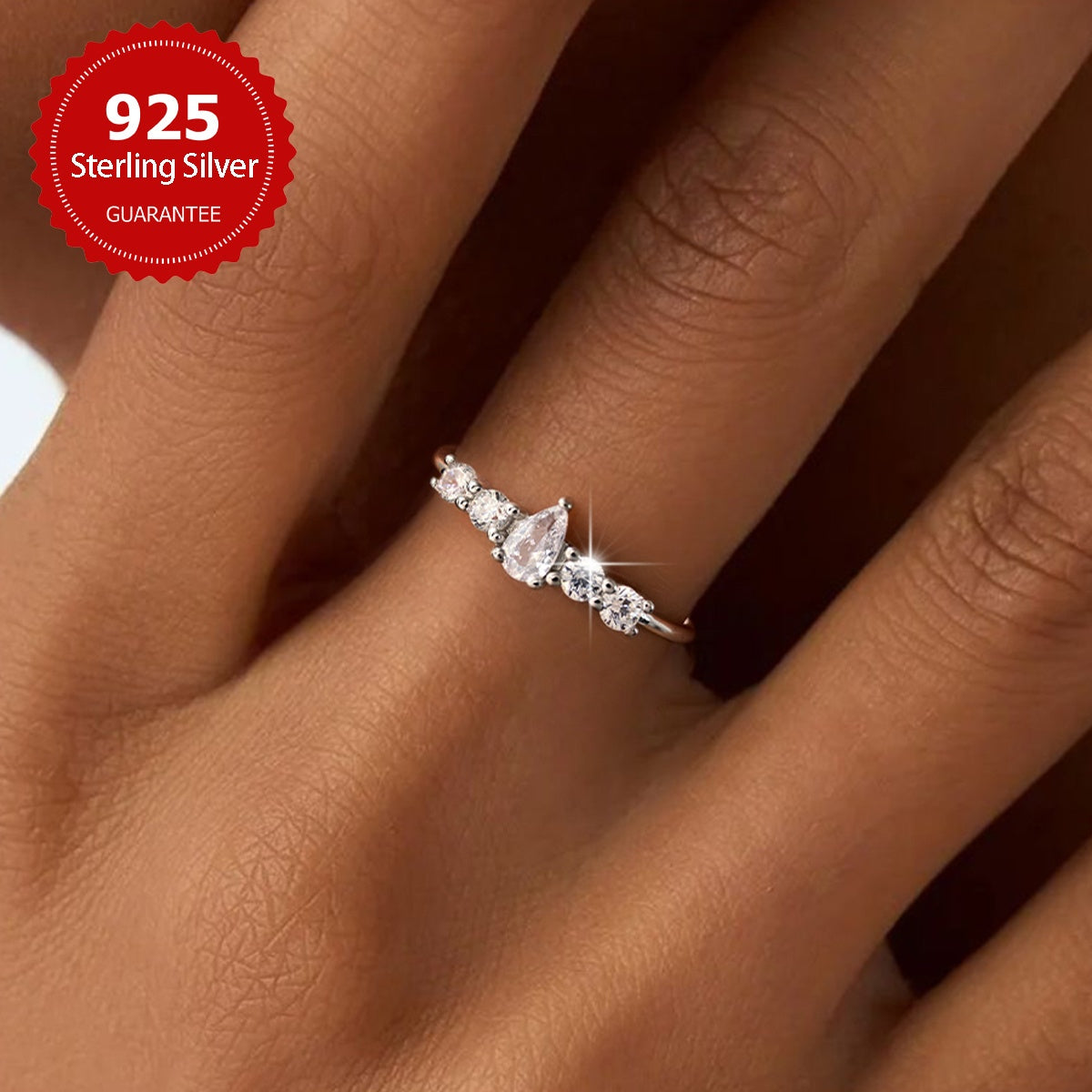 This stunning ring is crafted from 925 sterling silver, featuring a heart-shaped teardrop design. Perfect for weddings, Valentine's Day, and daily wear. Give it as a delicate and romantic gift to your loved one.