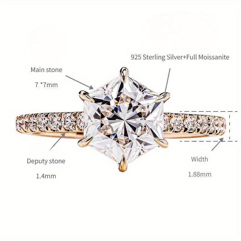 This 925 silver ring features a 7mm hexagonal moissanite, making it a perfect gift for birthdays, holidays, weddings, engagements, and anniversaries.