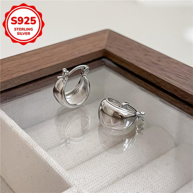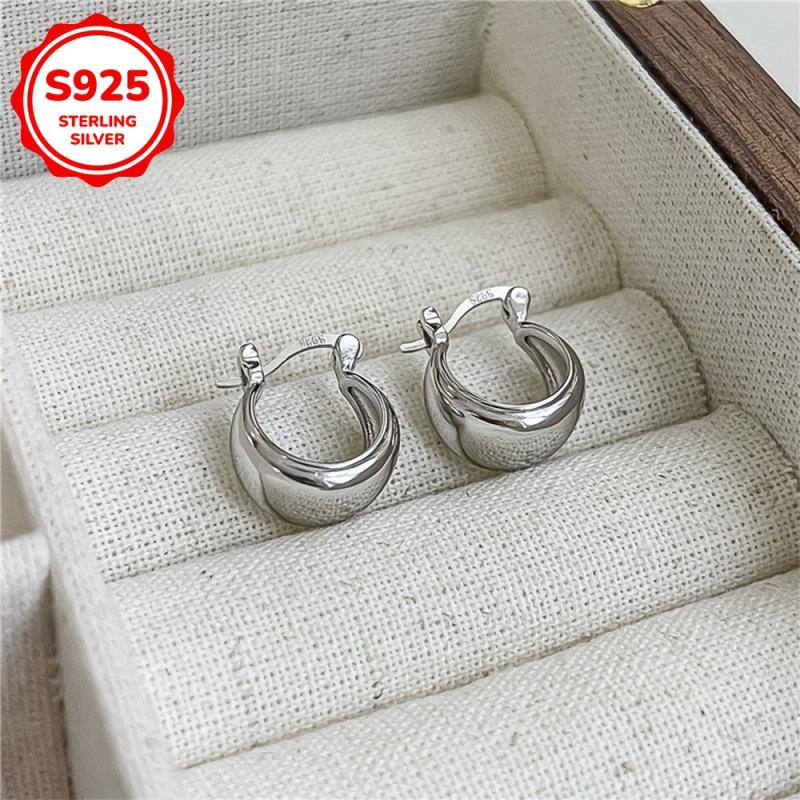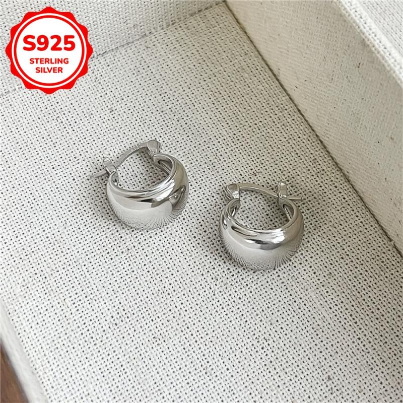 925 Silver Hoop Earrings Classic Round Dangle Allergy Free for Women