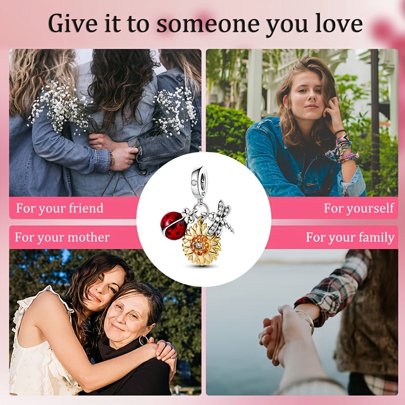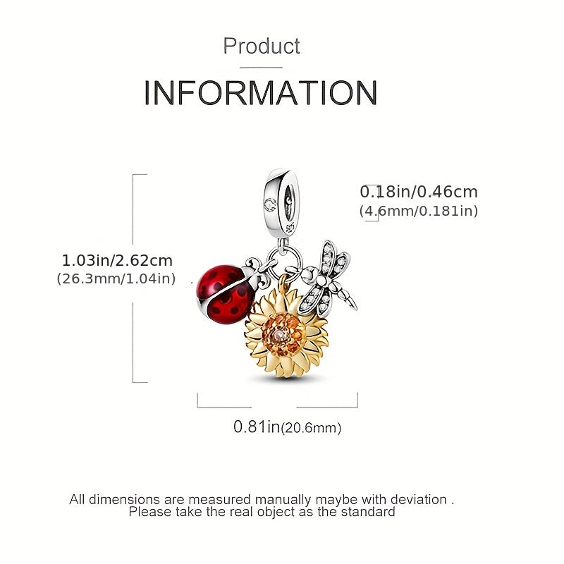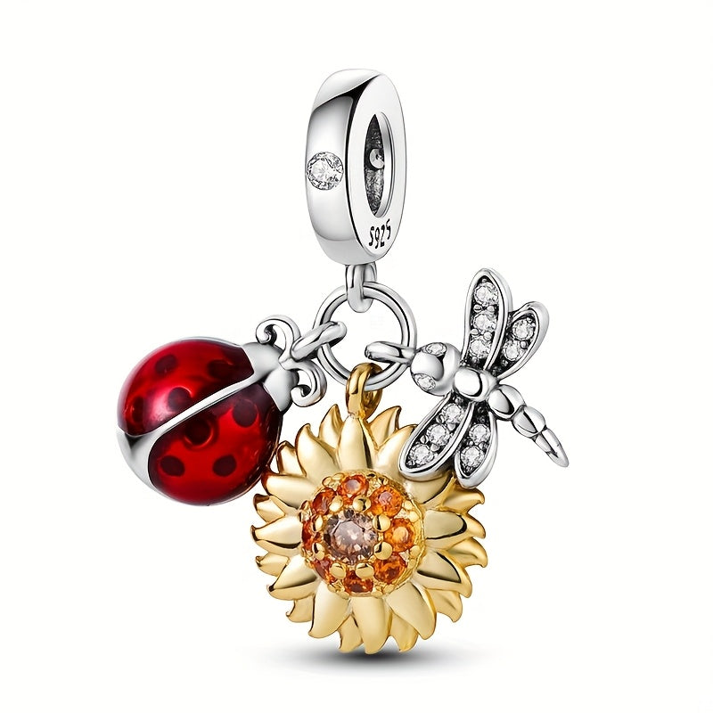 925 Silver Ladybug Sunflower Dragonfly Charm Pendant Fits Original 3mm Bracelets