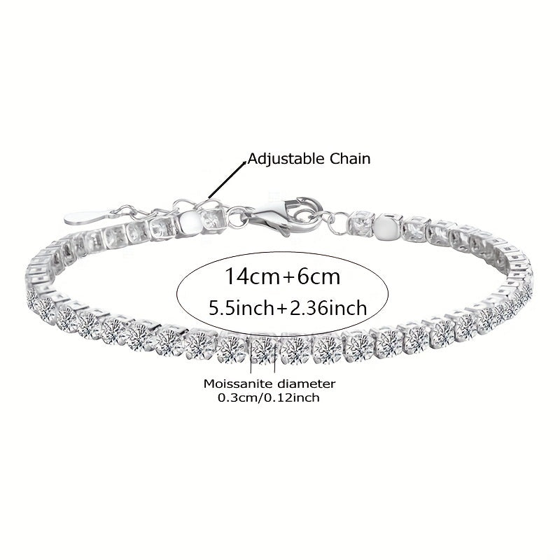 This stunning 925 sterling silver tennis bracelet features 4.4 carats of sparkling Moissanite stones. The adjustable design makes it versatile for both European and American styles. A high-end, classic piece of jewelry.