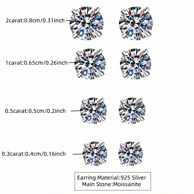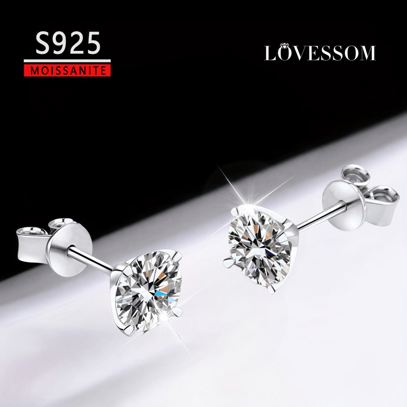 These elegant 925 silver moissanite earrings are perfect for daily wear and complement any outfit. Great for couples with various carat options.