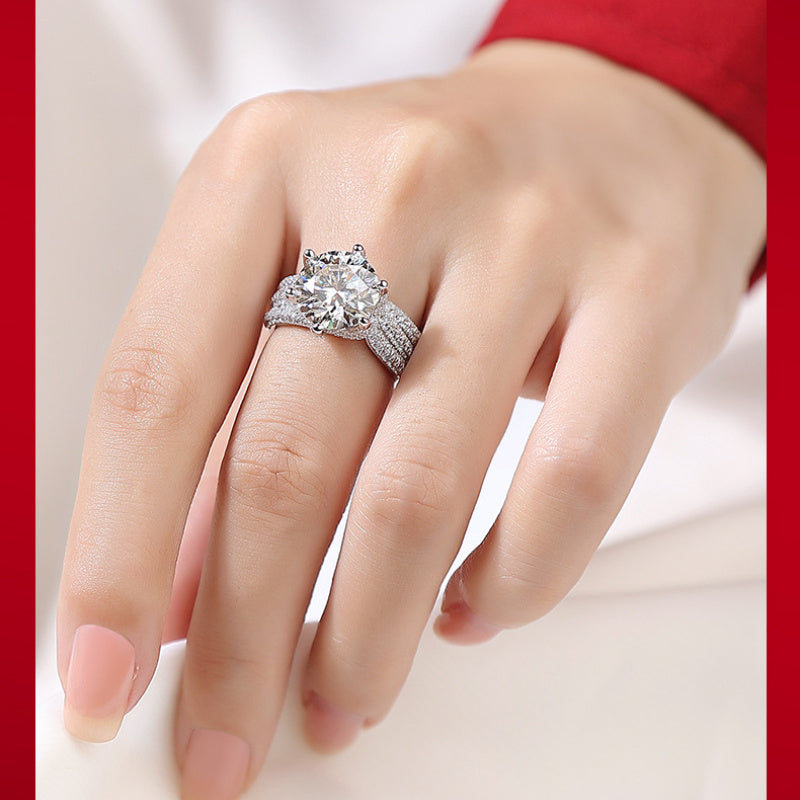 This 925 silver ring features Moissanite gemstone inlay, ensuring a lasting shine. It is a 5 carat ring suitable for both men and women.