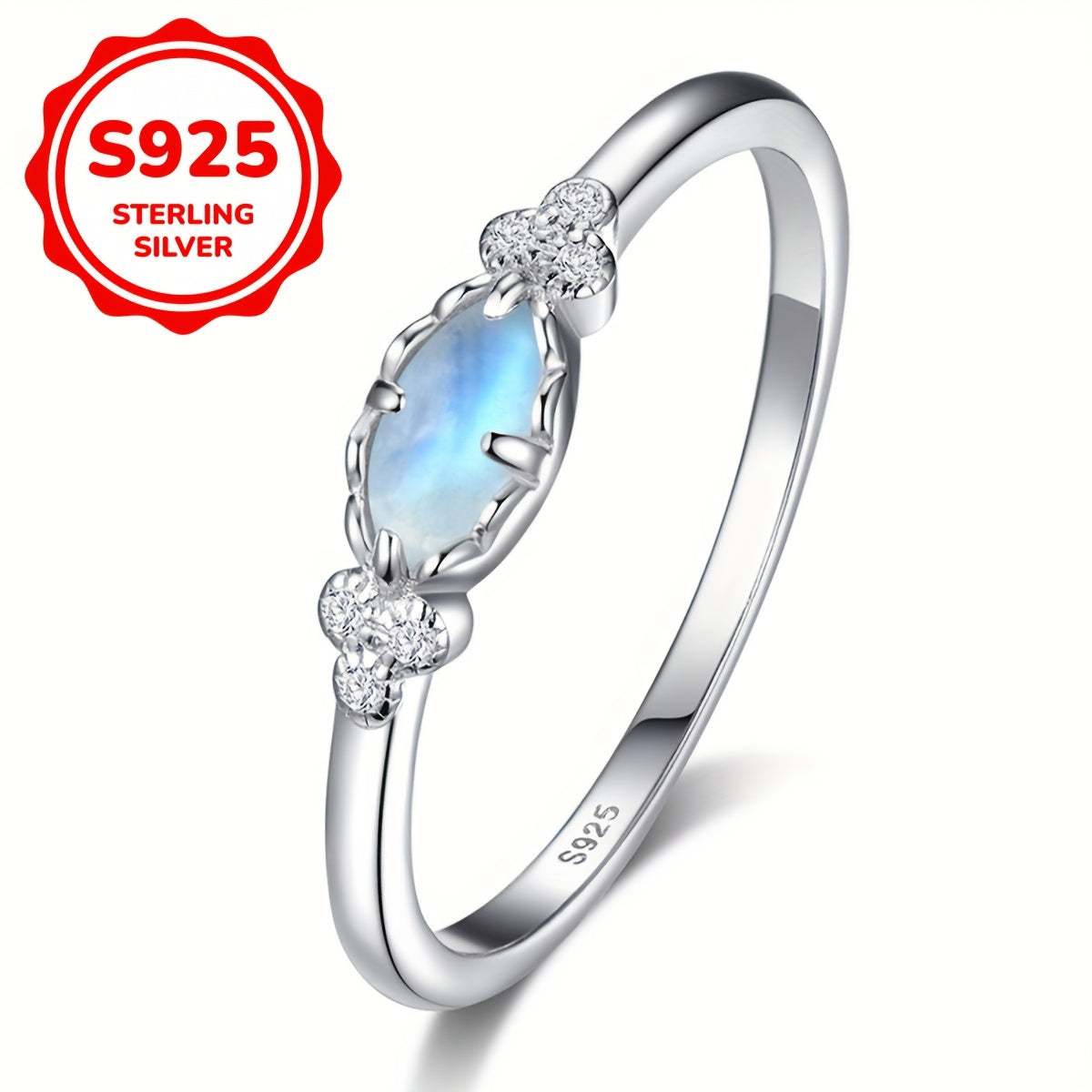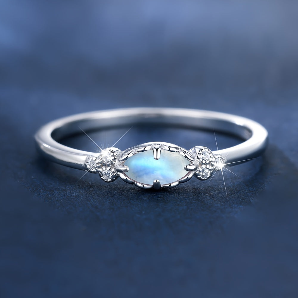 This stunning 925 sterling silver ring features a mesmerizing moonstone center surrounded by sparkling accents. Perfect for weddings, engagements, and special occasions.