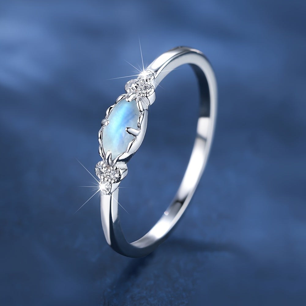 925 Silver Moonstone Ring with Sparkling Accents Bohemian Style