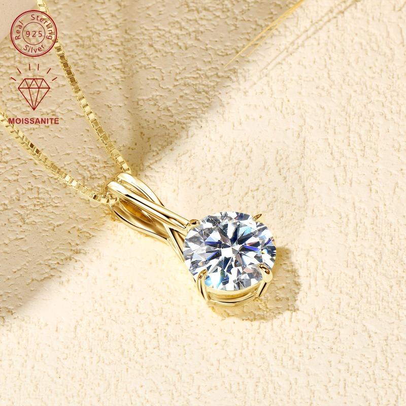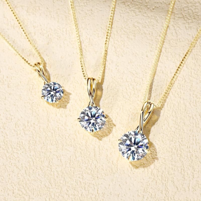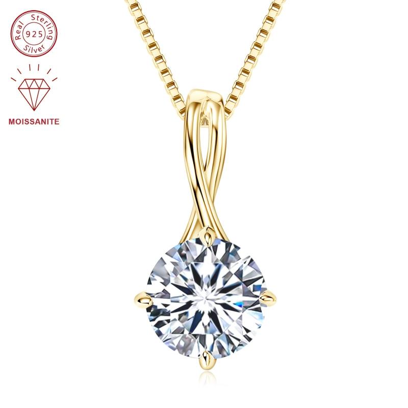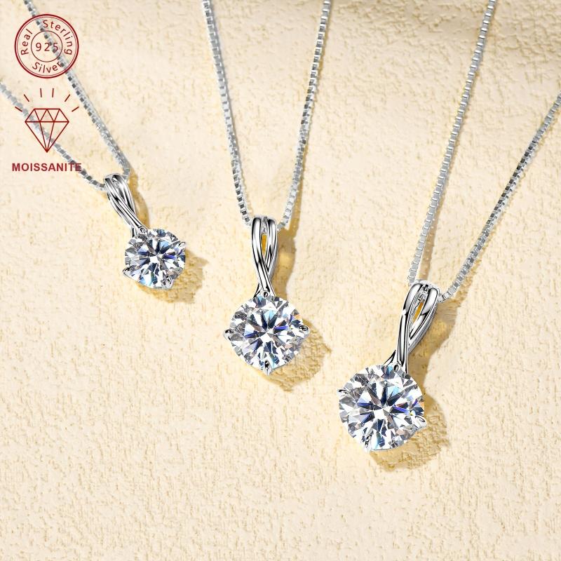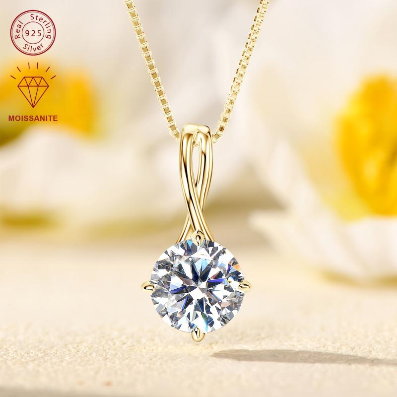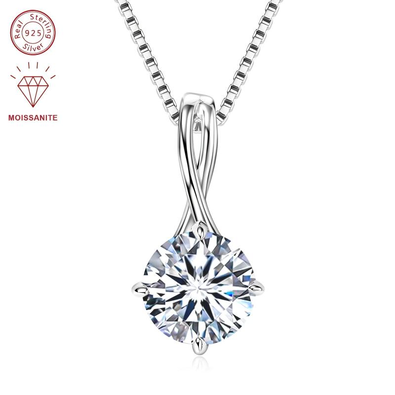 Elegant sterling silver pendant necklace featuring a dazzling 1-3 carat round moissanite stone set in an infinity design. Perfect for adding a touch of sparkle to any outfit.