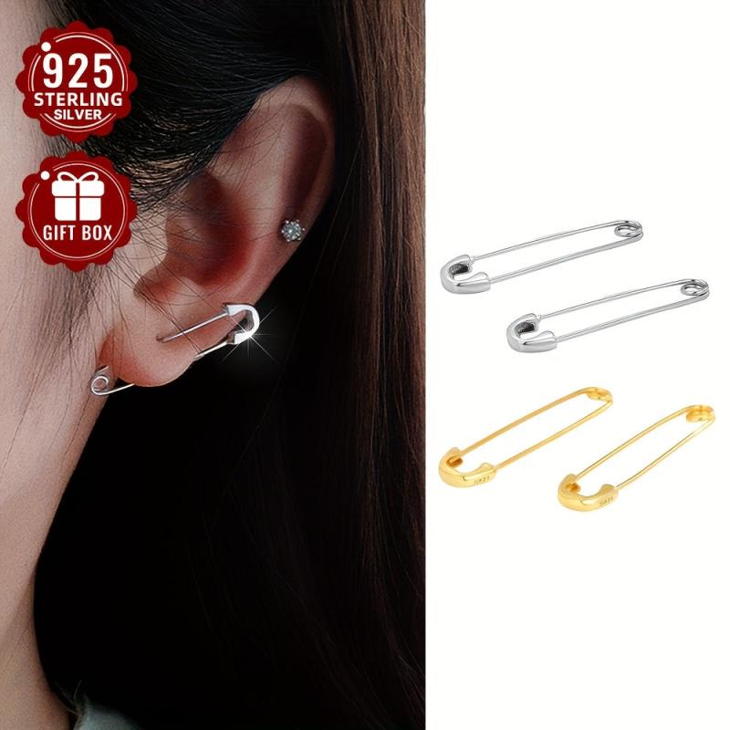 Add a touch of style to your outfit with these elegant 925 sterling silver paperclip studs. Perfect for daily wear, events, and gatherings.