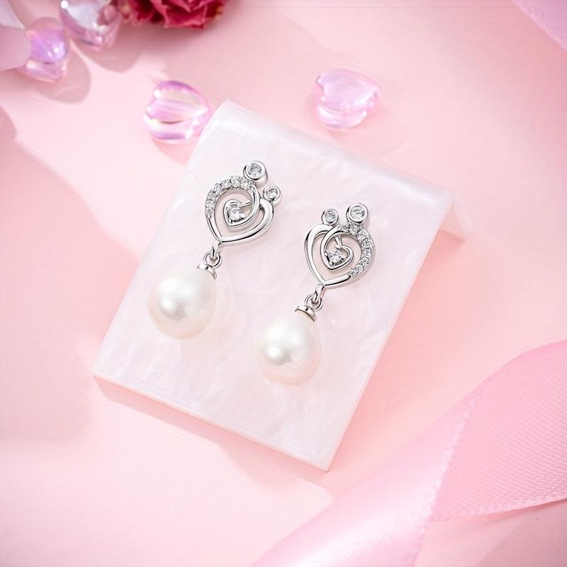 Delicate silver earrings with a parent's love stone drop design, perfect for birthdays, weddings, and special occasions.