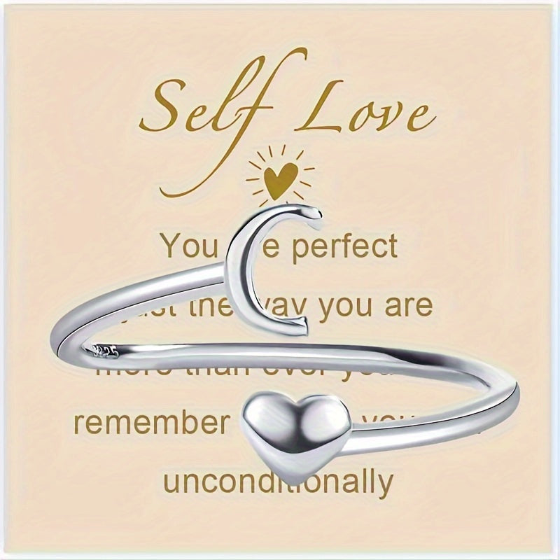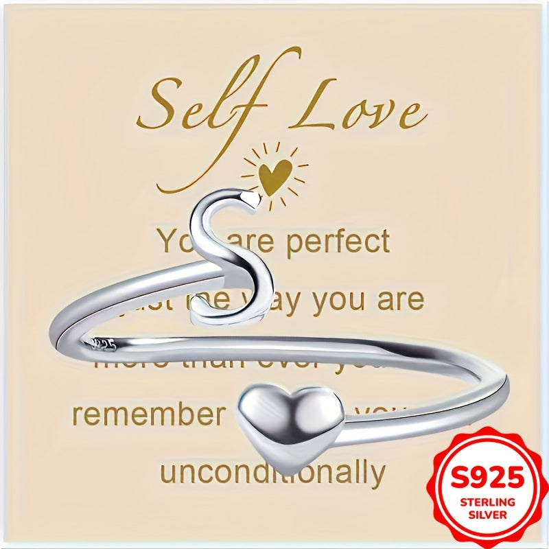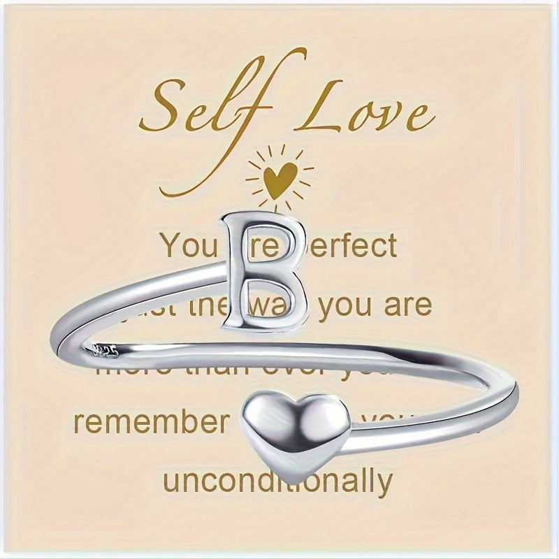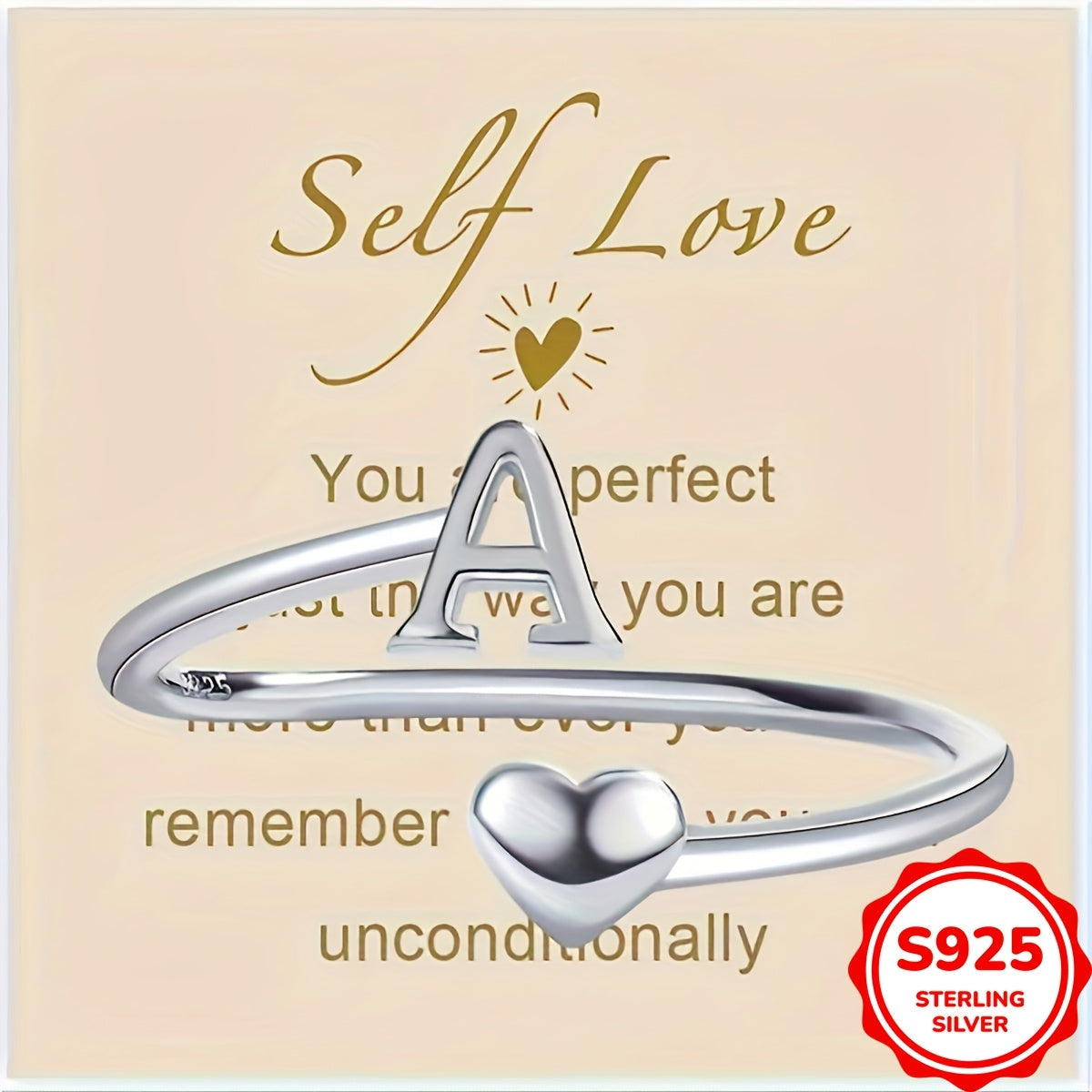925 Silver Promise Ring Heart Letter Adjustable 1.8g