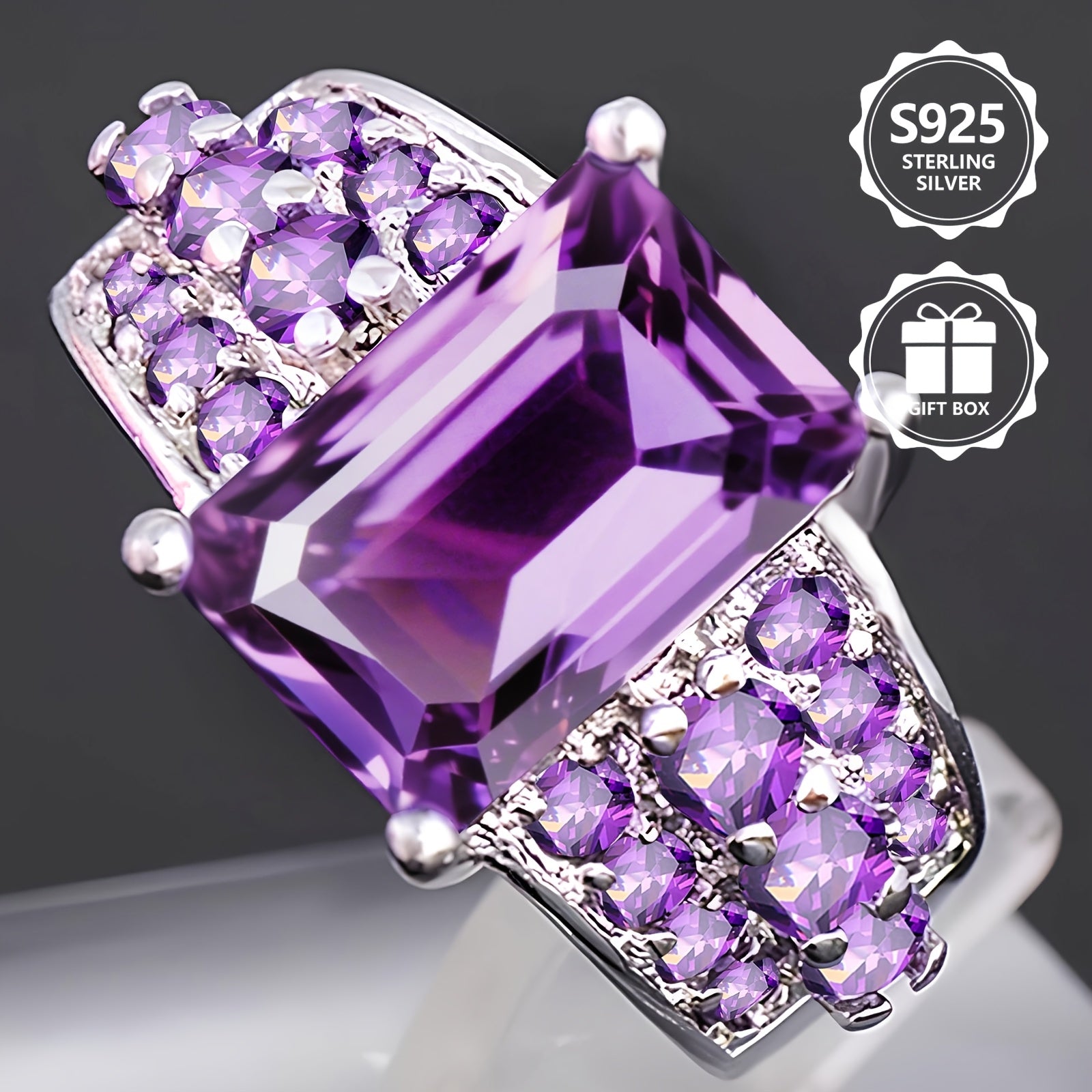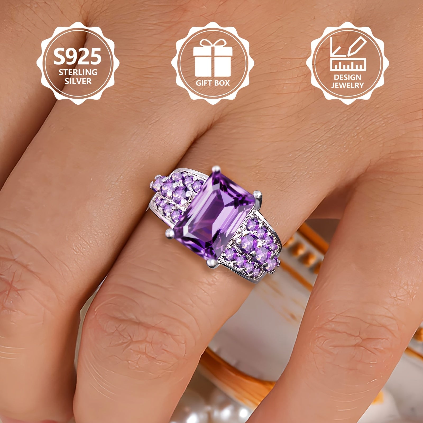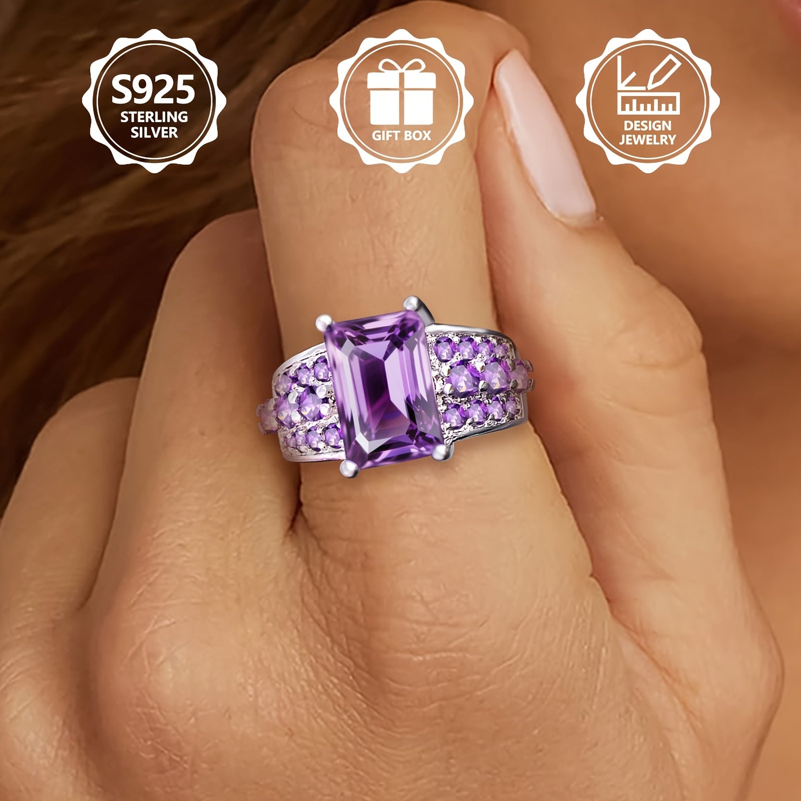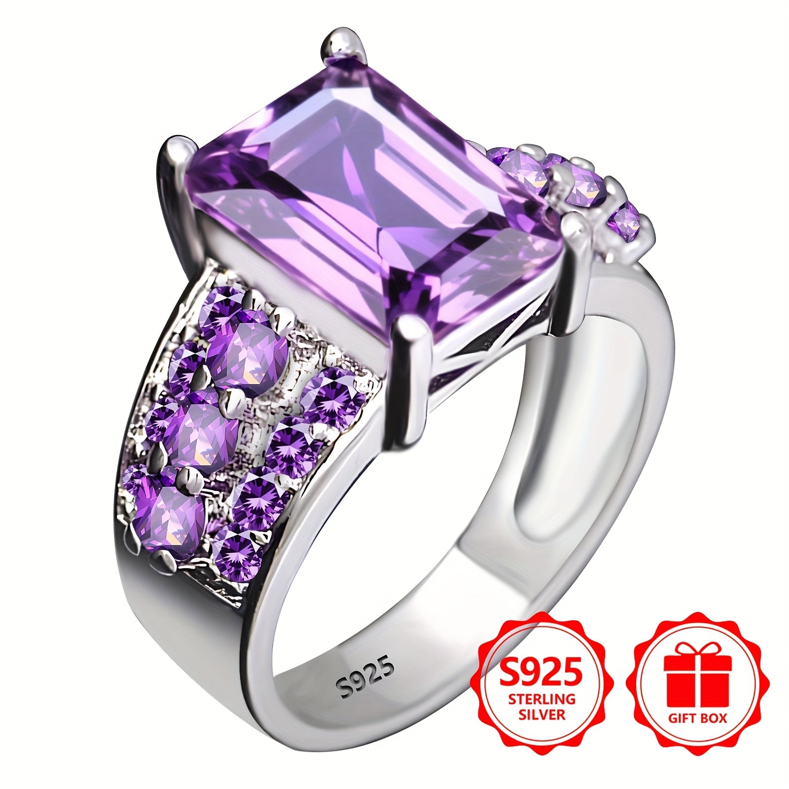 Stunning 925 silver engagement ring with purple zirconia, perfect for promises and special occasions.